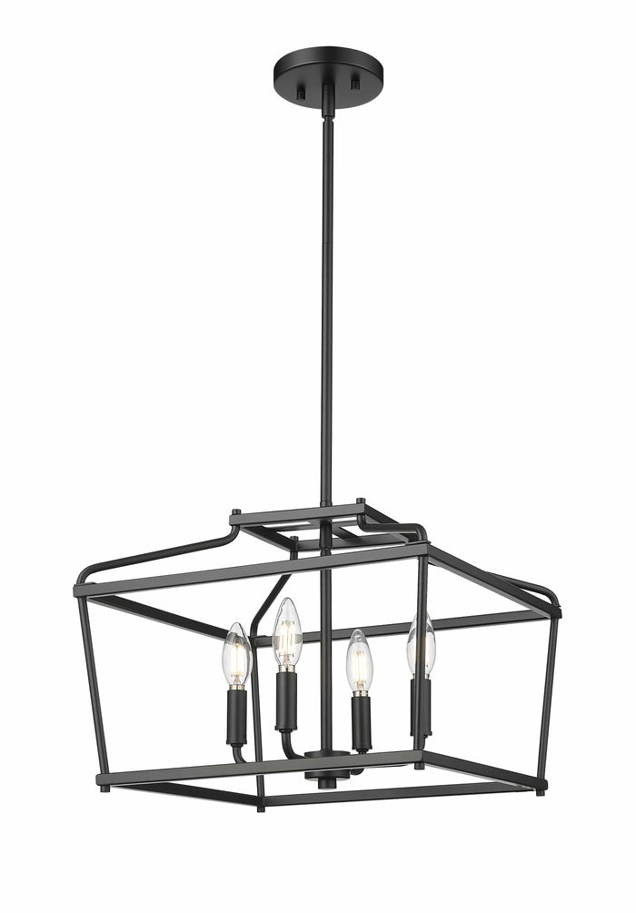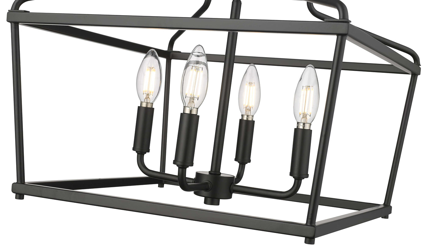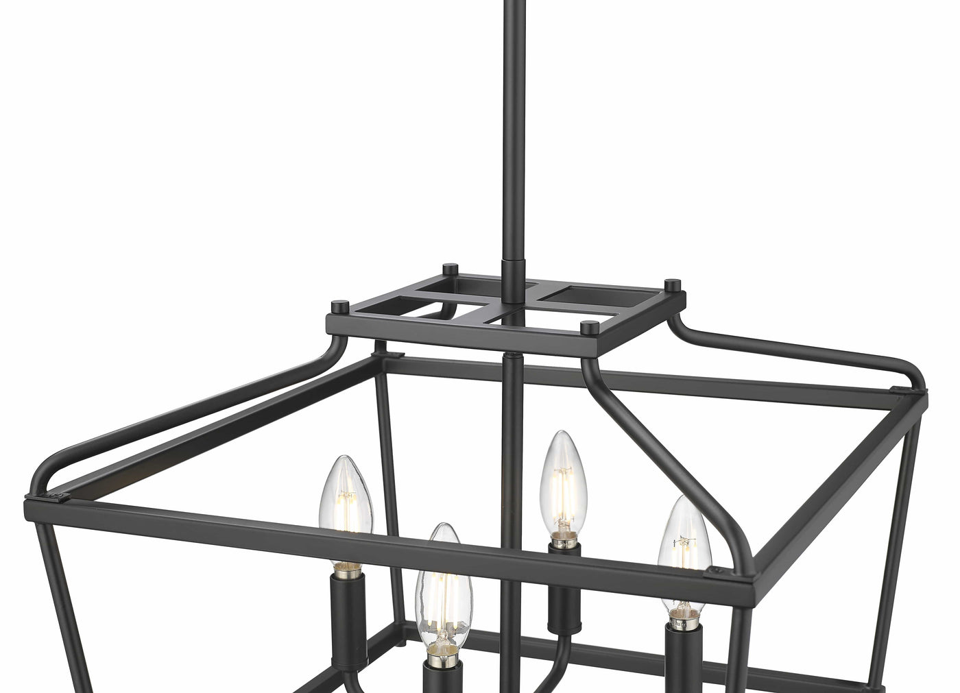 A fresh combination of traditional lines juxtaposed against a modern aesthetic, the fixtures are available as 4- or 5-light lanterns, 5-light island, and 4-light pendant.
