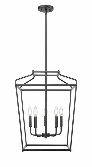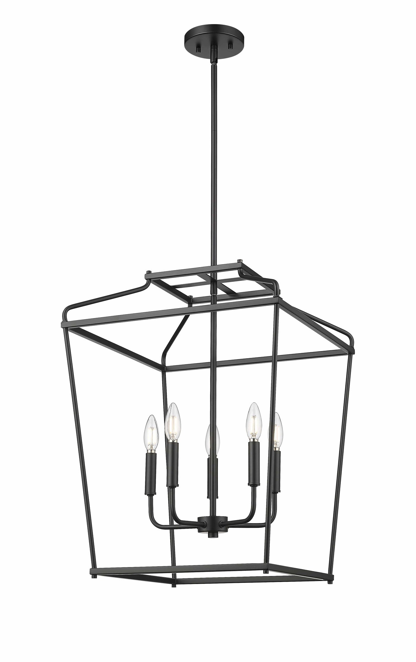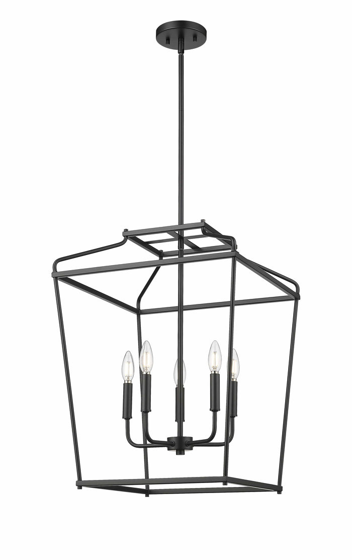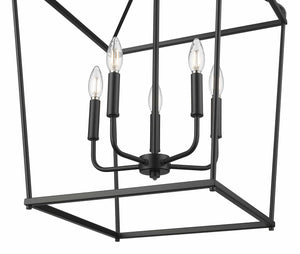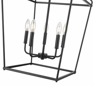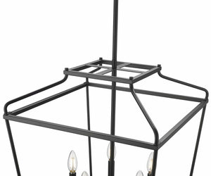 A fresh combination of traditional lines juxtaposed against a modern aesthetic, the fixtures are available as 4- or 5-light lanterns, 5-light island, and 4-light pendant.