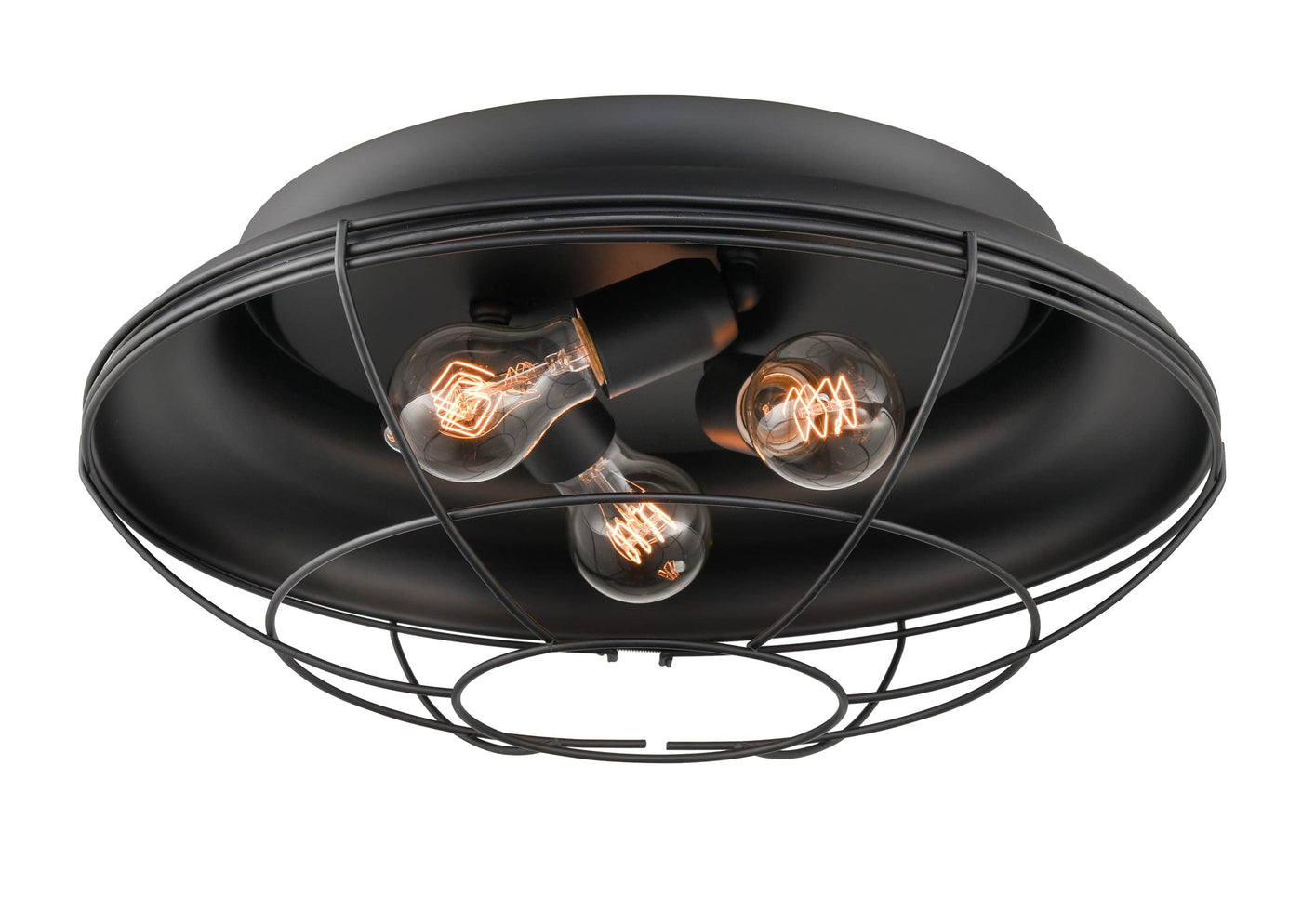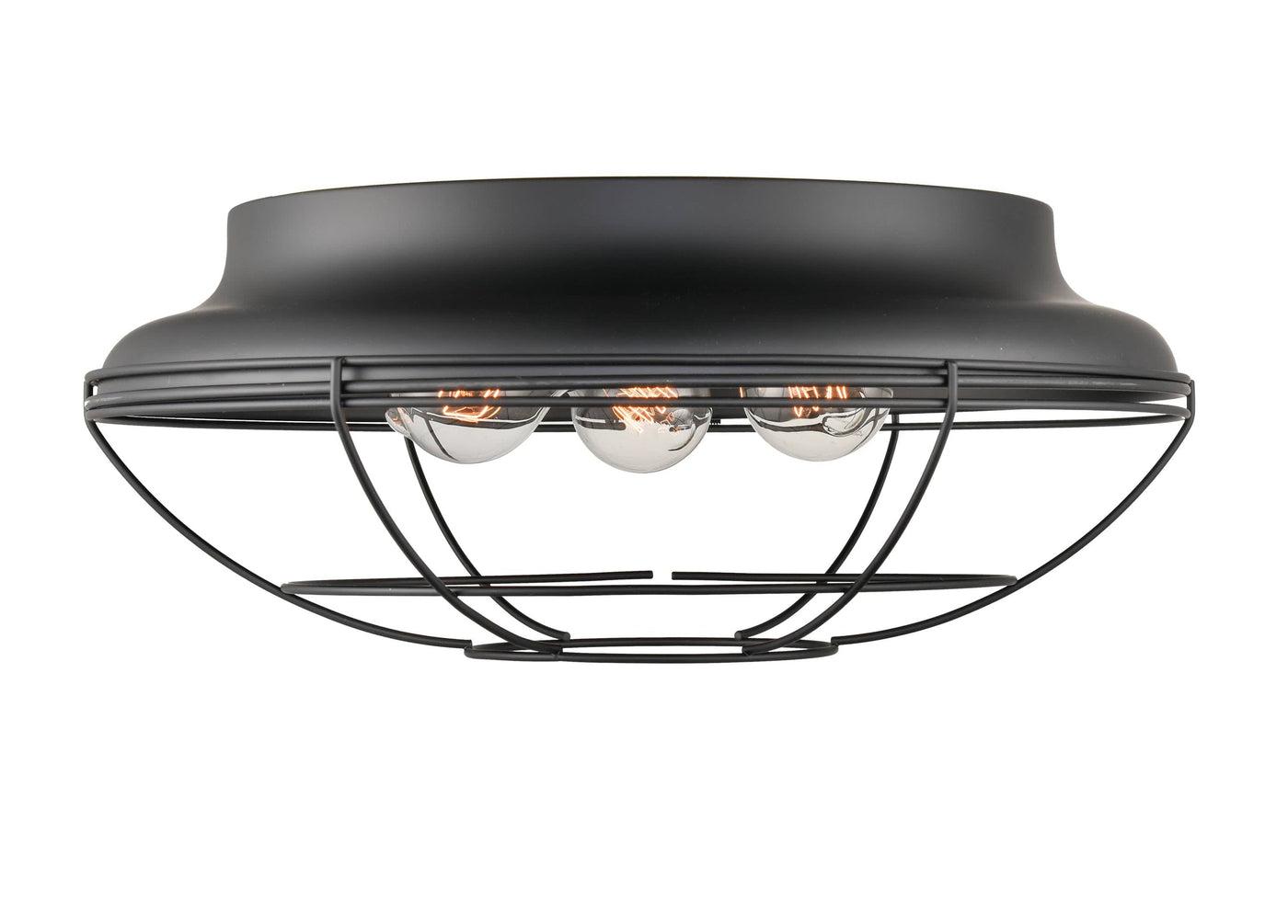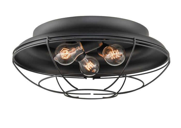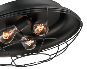 Neo-Industrial Flush Mount Fixture - Matte Black - Wire Guard - 17.25in. Diameter - E26 Medium Base