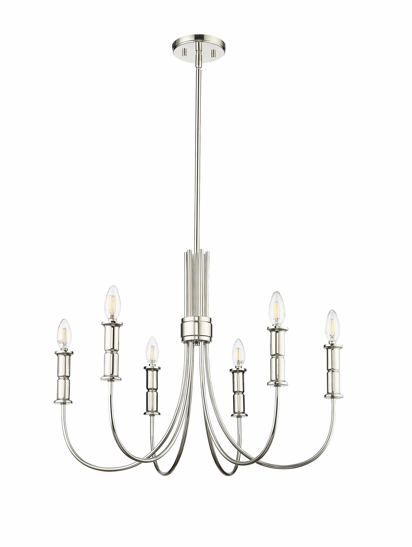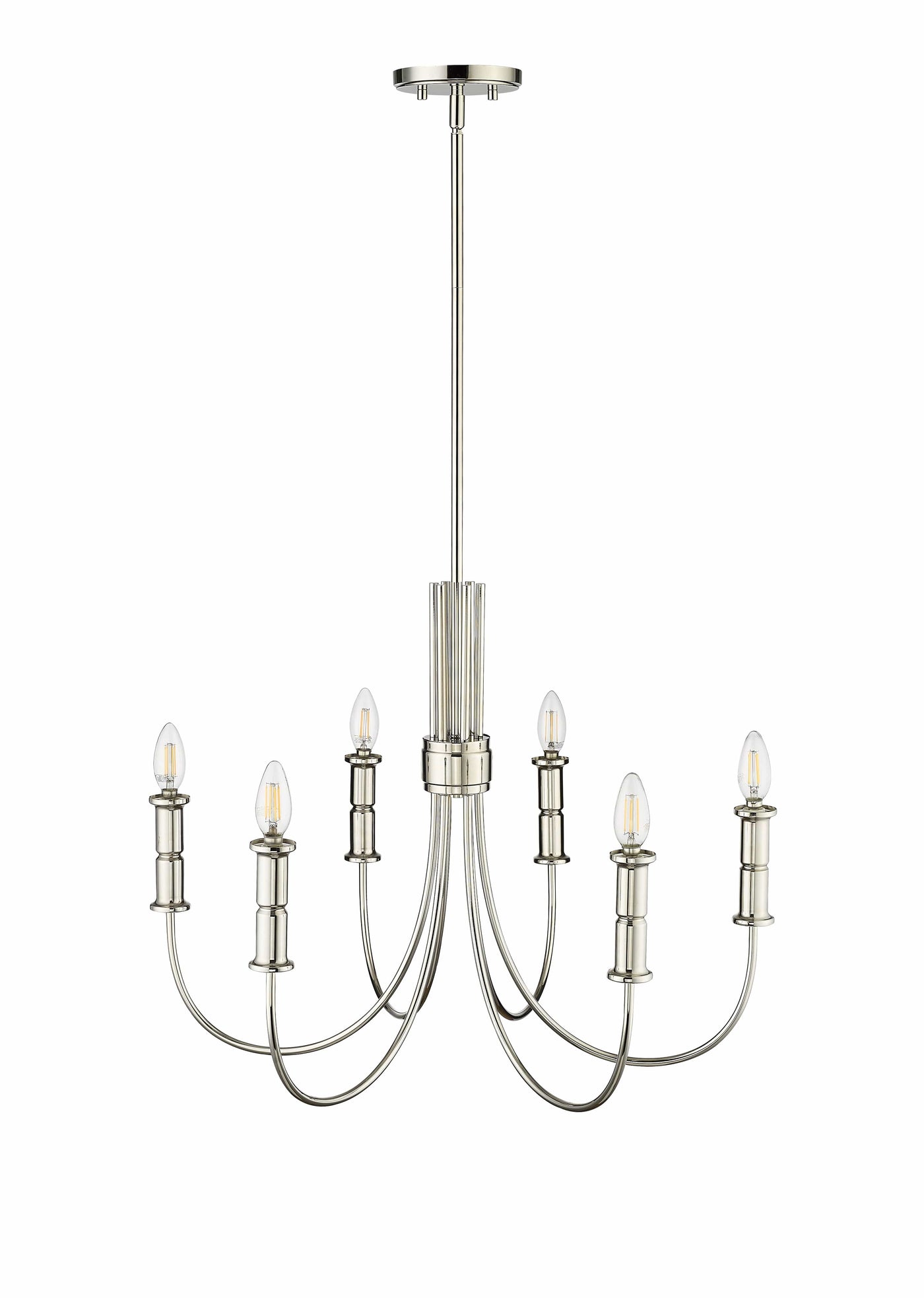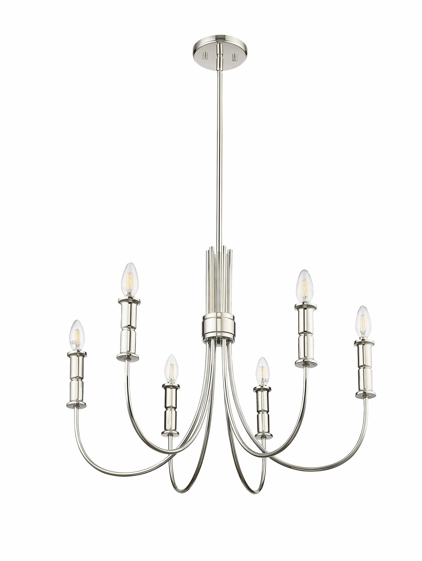 6 Lamps Potiss Chandelier - Polished Nickel - 26in Diameter - E12 Candelabra Base
