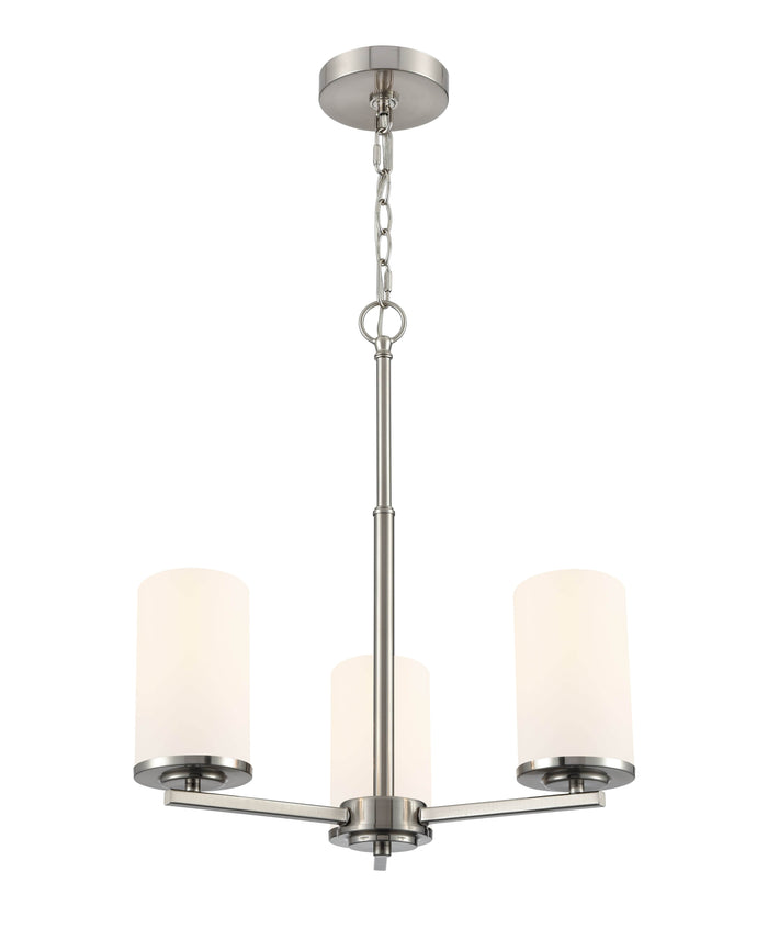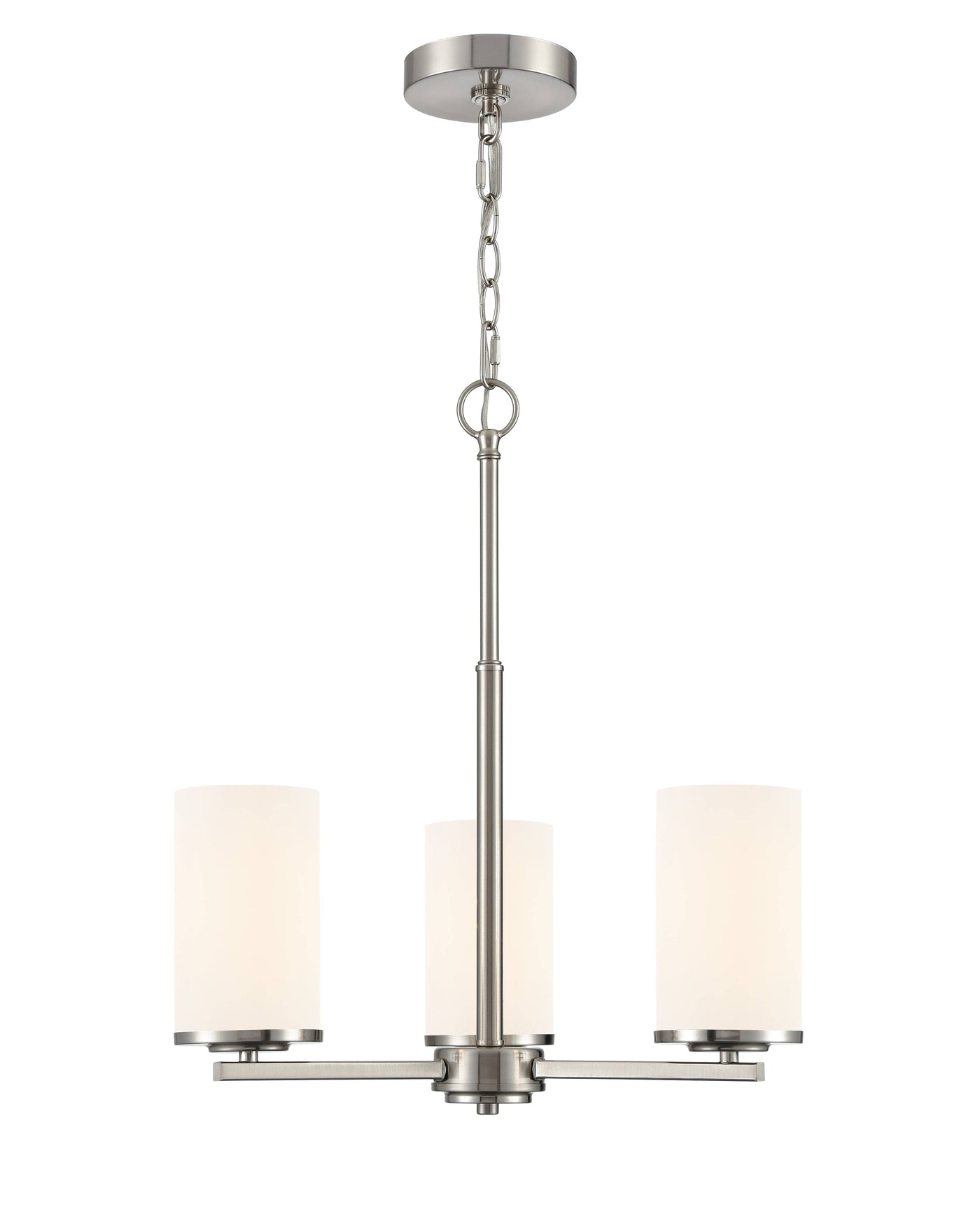 3 Lamps Verlana Chandelier - Brushed Nickel - Etched White Glass - 19in Diameter - E26 Medium Base