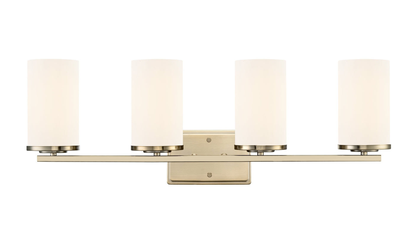 4 Lamps Verlana Vanity Light - Modern Gold - Etched White Glass - 27.75in. Wide