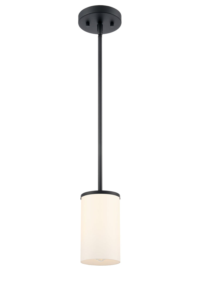 Verlana Pendant Fixture - Matte Black - Etched White Glass - 5in. Diameter - E26 Medium Base