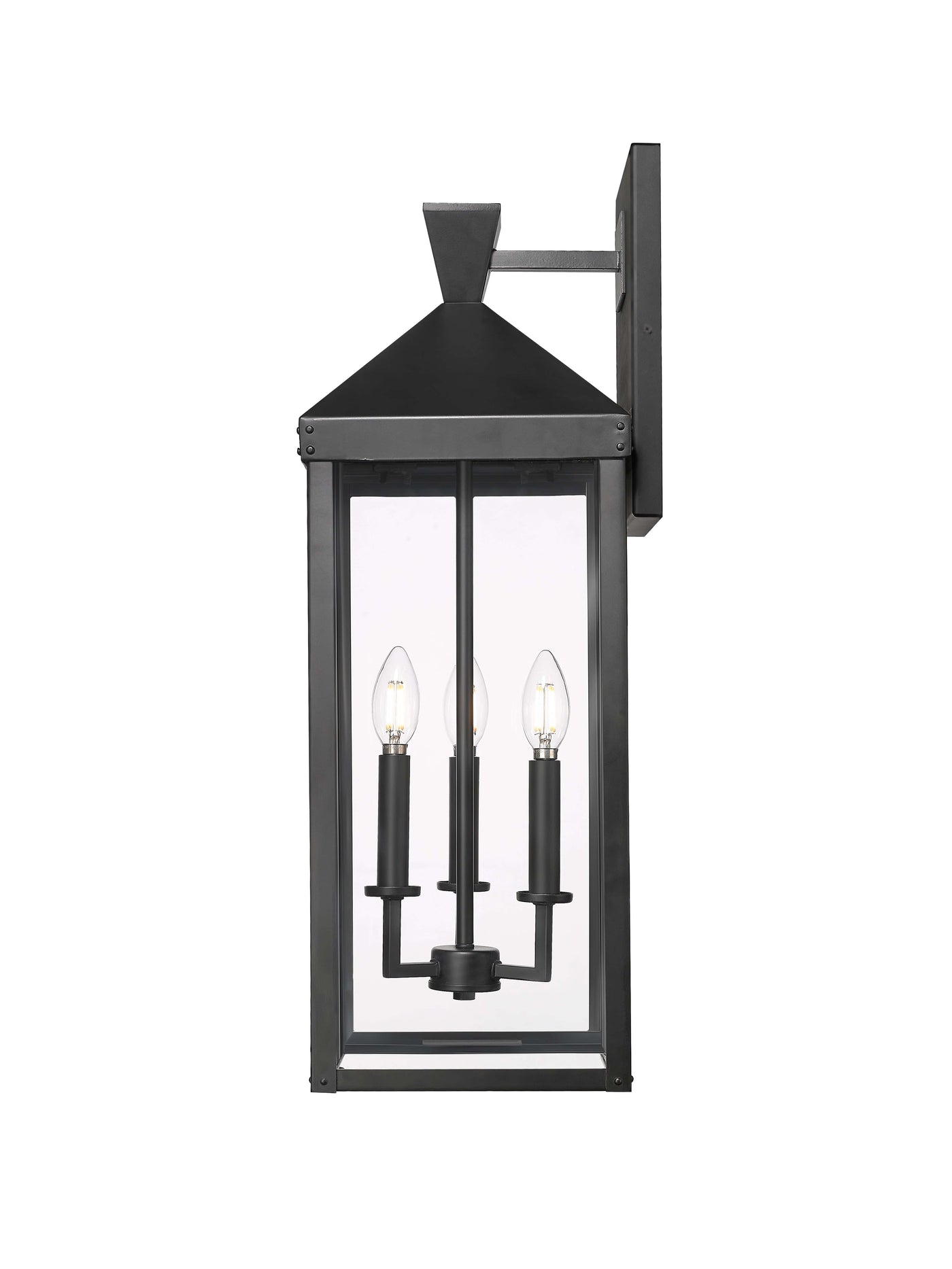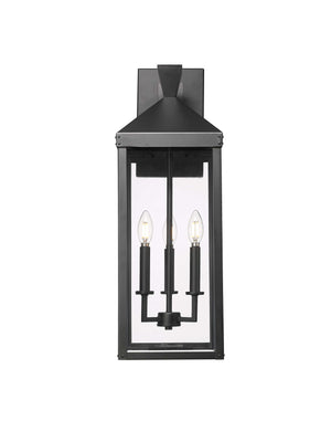 Yates Outdoor Wall Sconce - Powder Coated Black - Clear Glass - 9.75in. Extension - E12 Candelabra Base