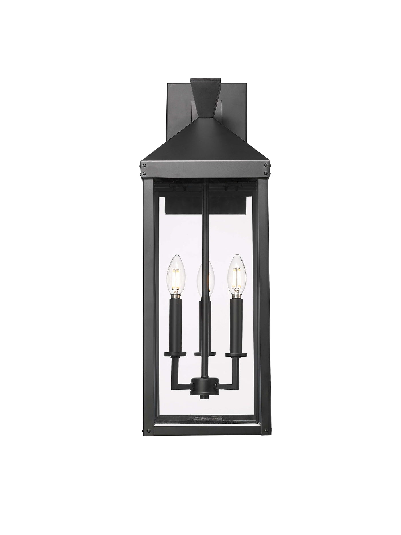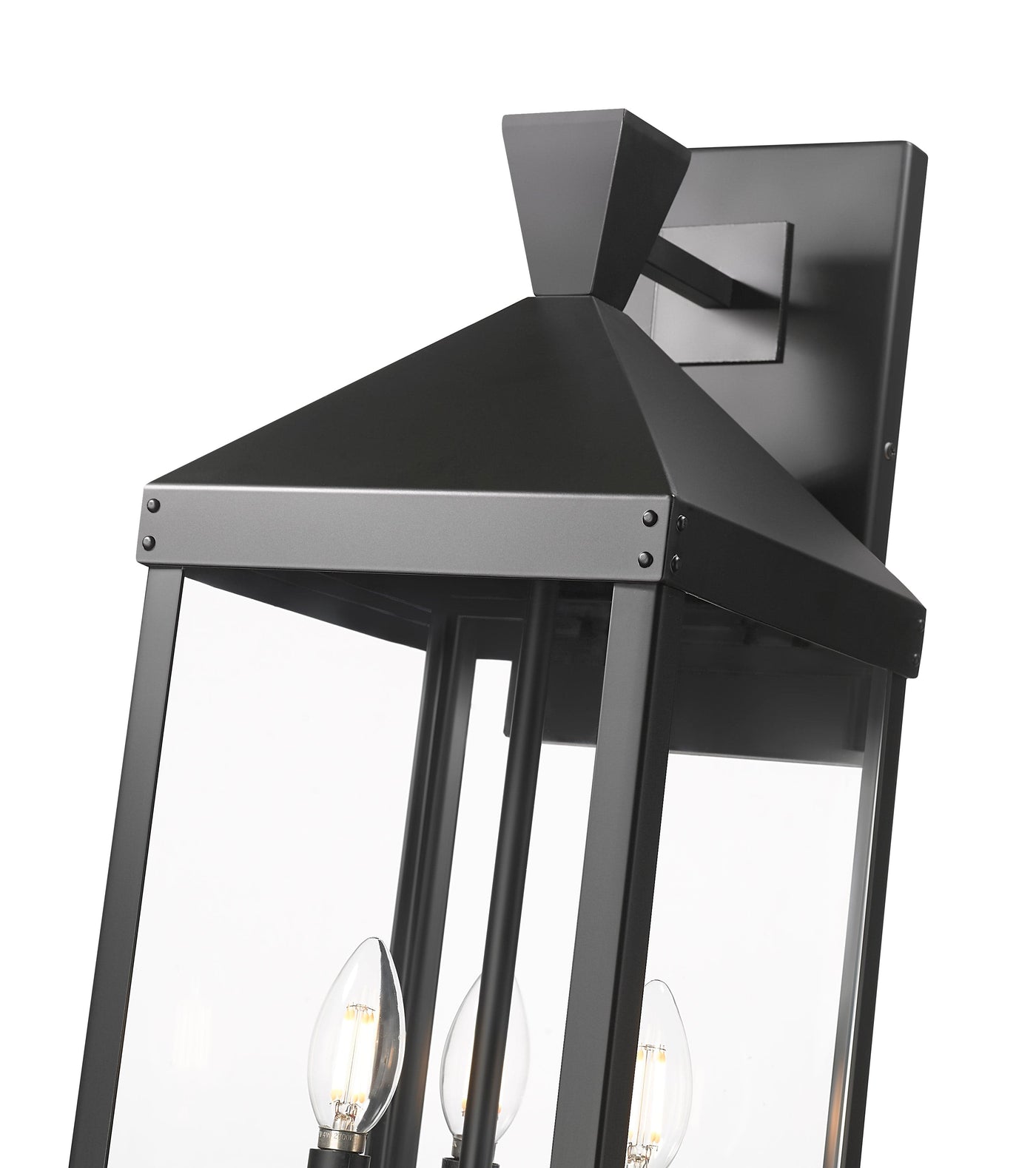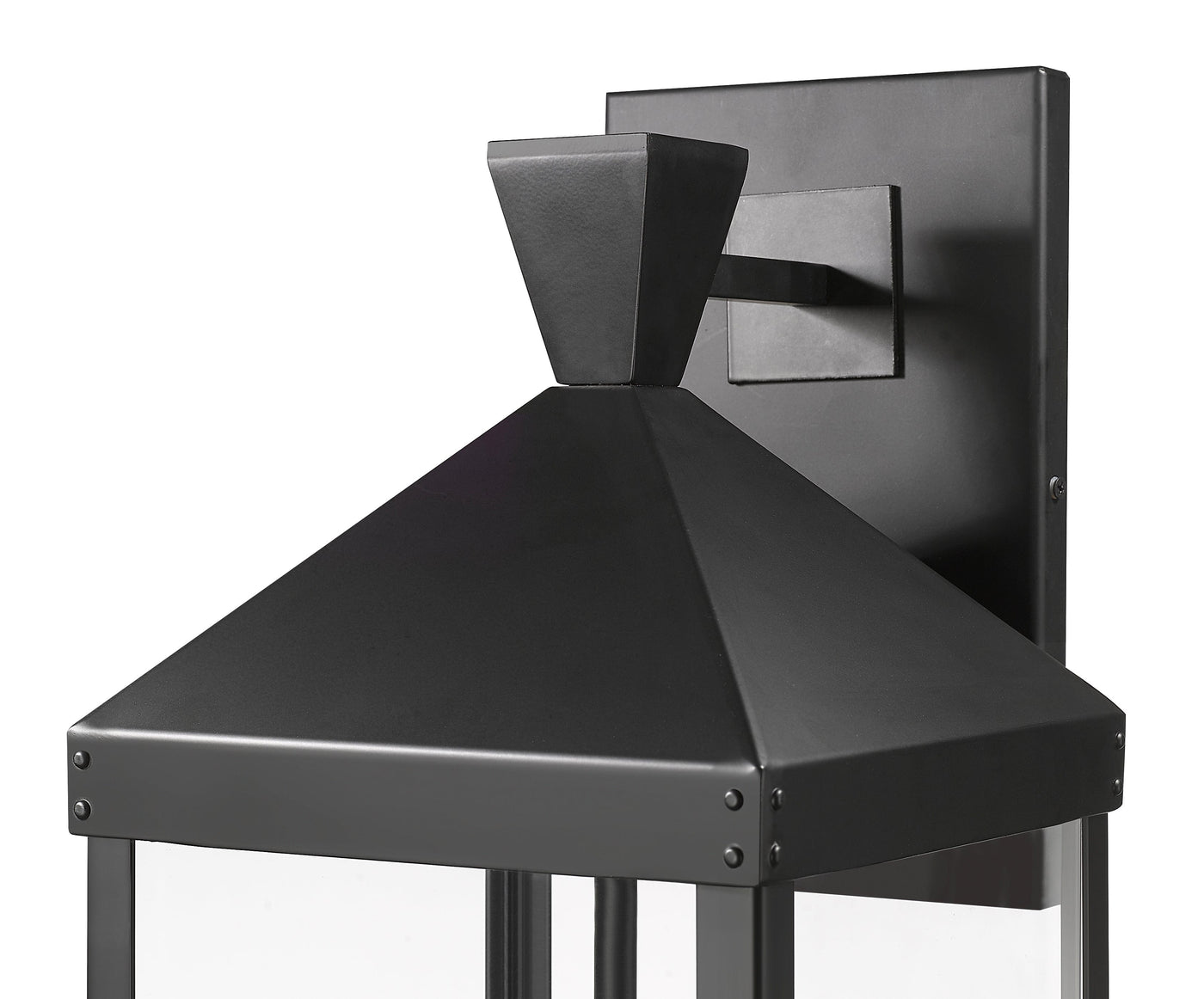 Oversized clear glass panels provide optimum illumination, and the angled lines of stylized cover and finial complete the contemporary look.