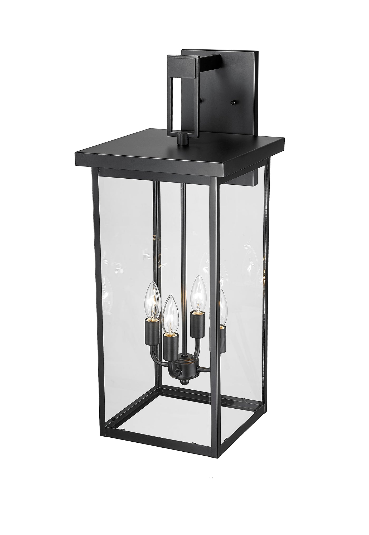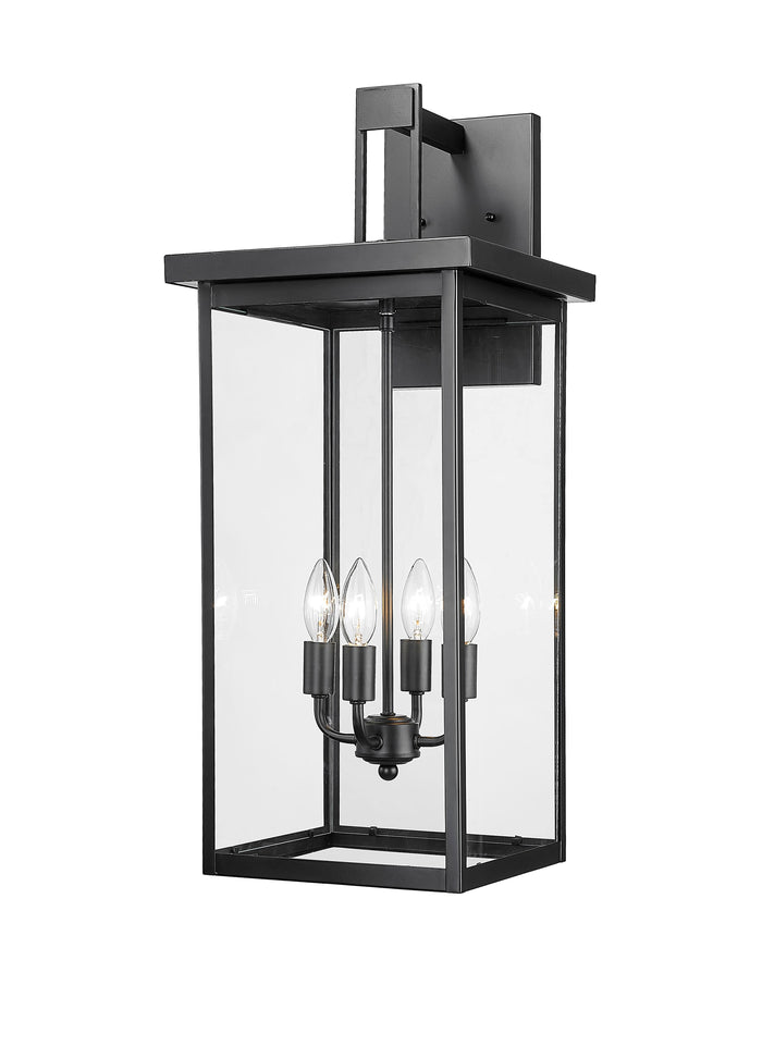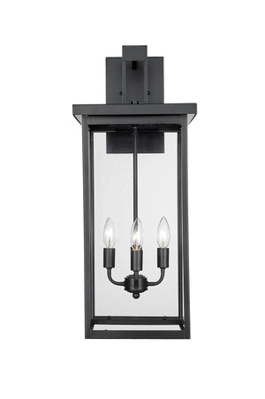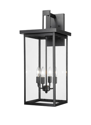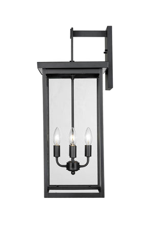 Barkeley Outdoor Wall Sconce - Powder Coated Black - Clear Glass - 12in. Extension - E26 Candelabra Base