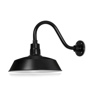14" Satin Black RLM Barn Light Shade With Gooseneck Arm