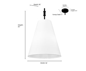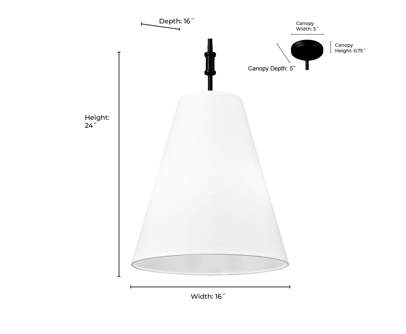 Adorra Pendant Fixture - Polished Nickel - White Fabric Shade - 16in. Diameter - E12 Candelabra Base