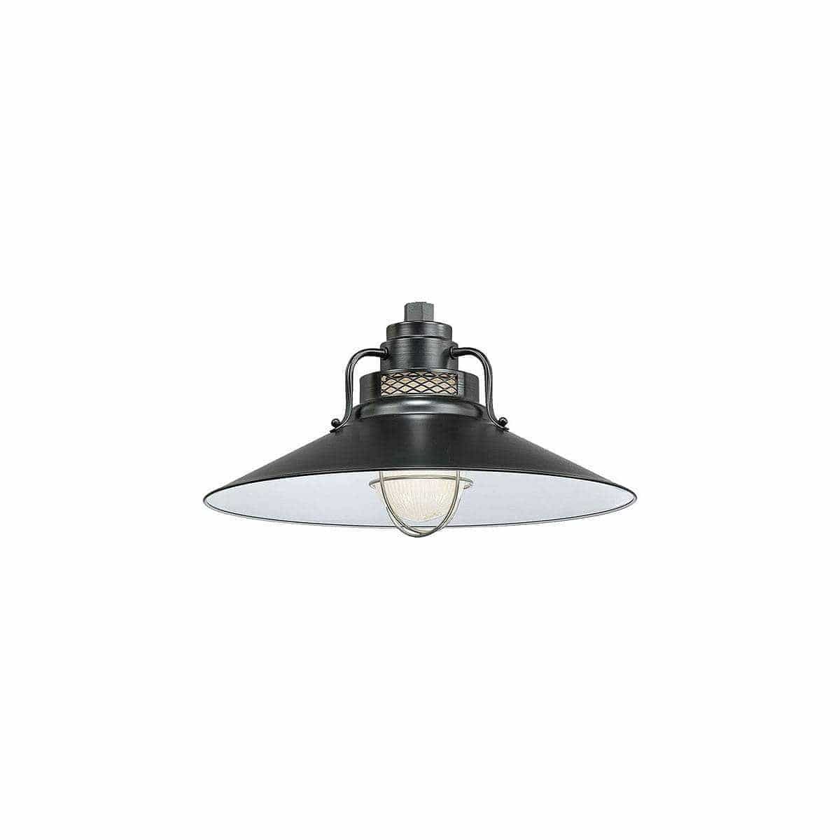 The Satin Black Railroad Light Fixture has a 18" Shade Diameter and 10" Shade Height.