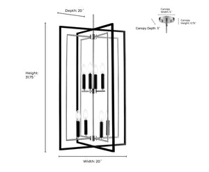 Noelle Pendant Fixture - Matte Black & Modern Gold - 20in. Diameter - E12 Candelabra Base
