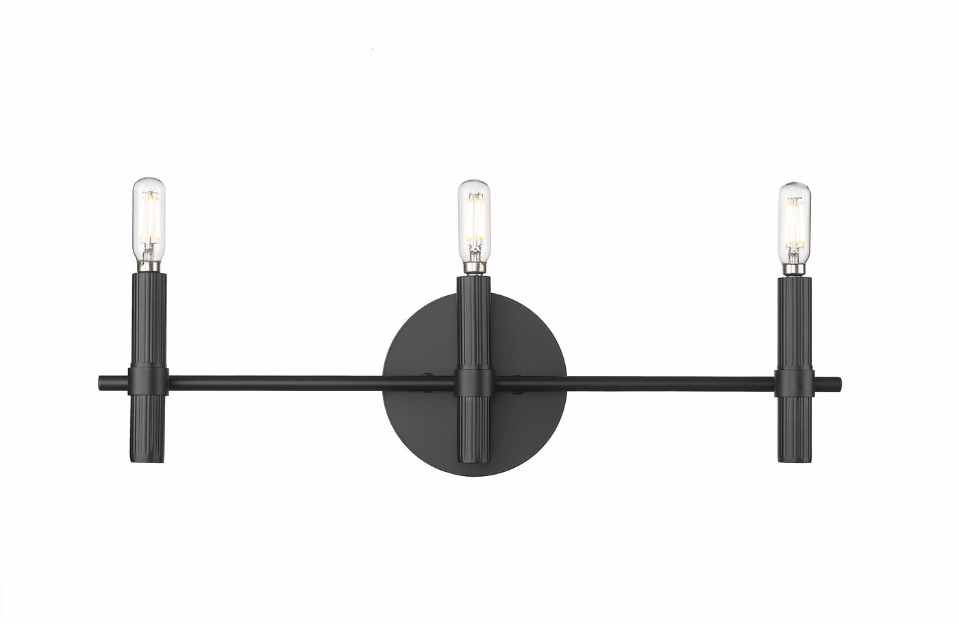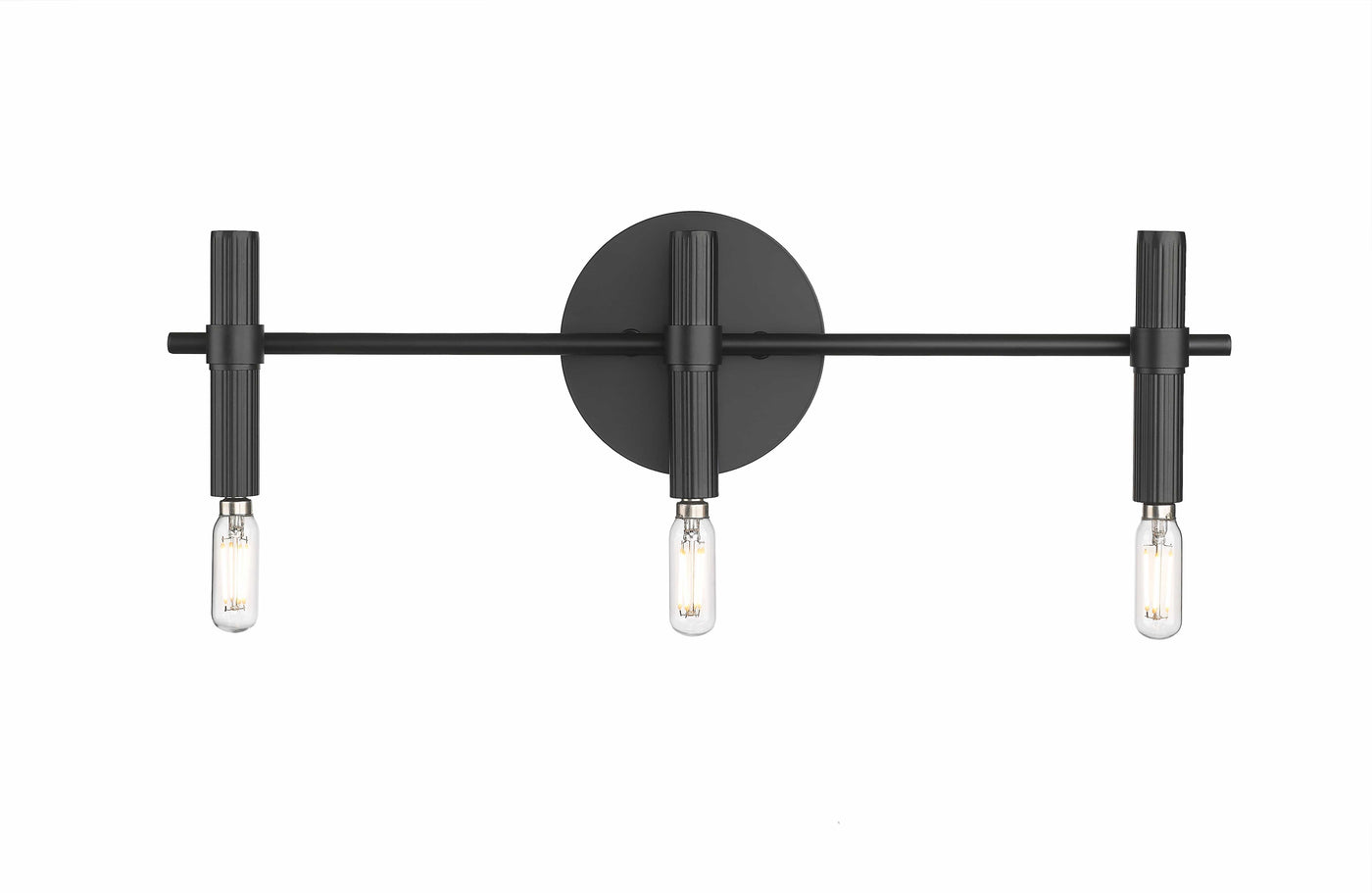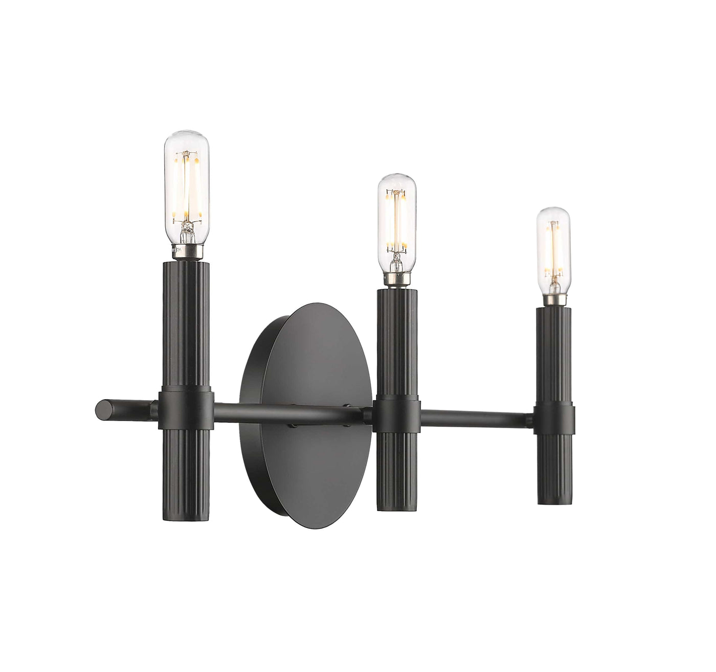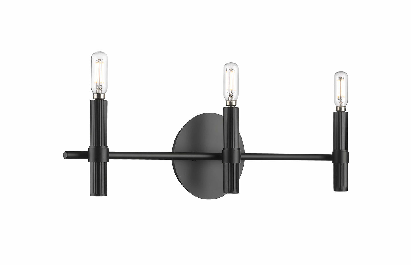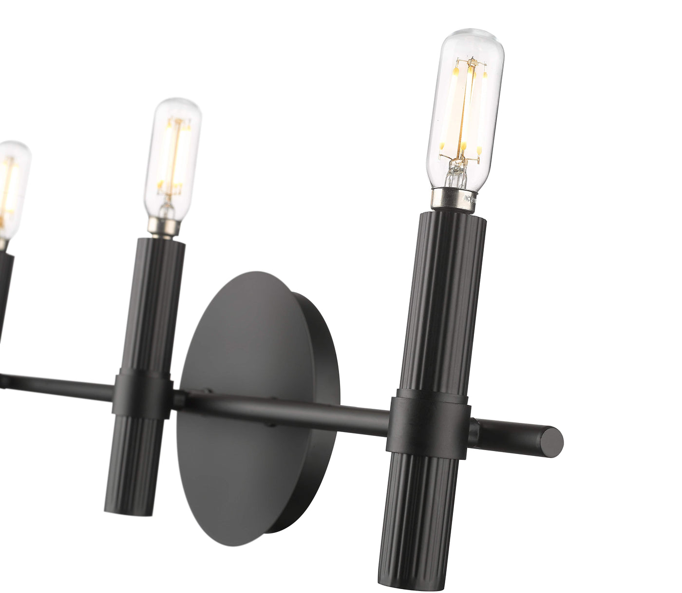 Combining Mid-Century design with sleek and linear Scandinavian simplicity, the fixtures are finished in matte black and feature tubular shaped candles for an electrifying twist.