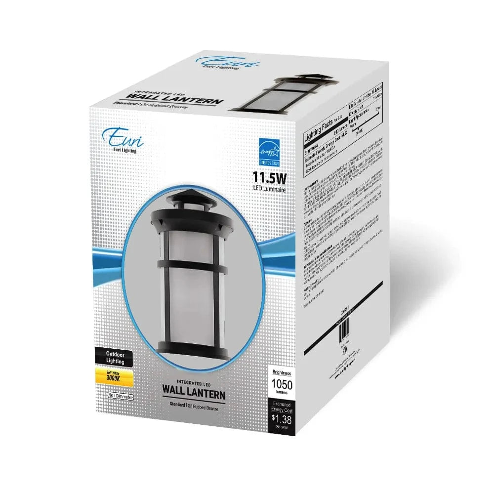 11.5W Outdoor LED Wall Lantern - Oil Rubbed Bronze - Frosted Glass Lens - 4000K Natural White