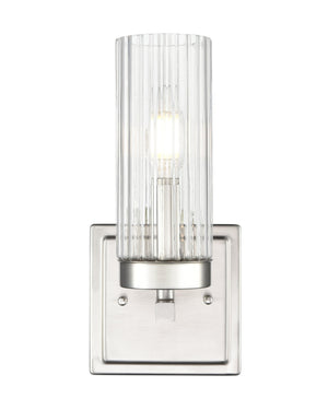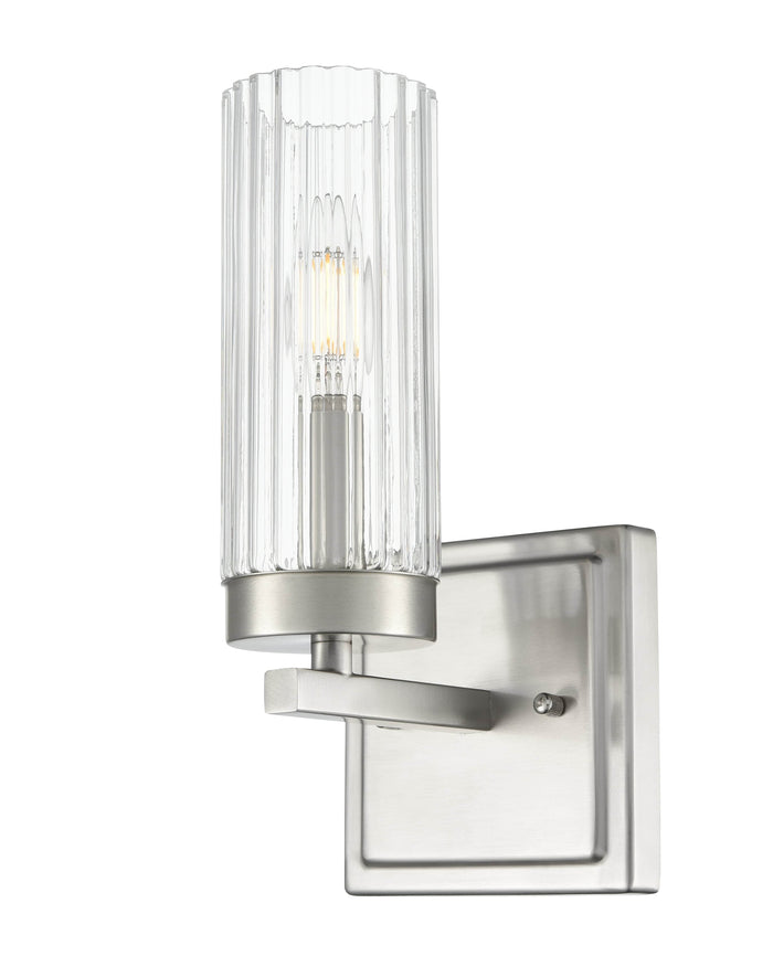 Iversen Wall Sconce - Brushed Nickel - Clear Reeded Glass - 5.75in. Extension - E12 Candelabra Base