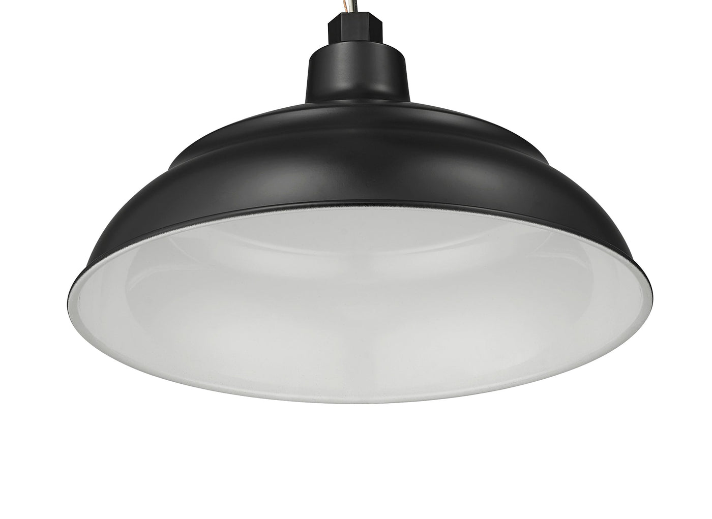 Diameter Integrated LED Warehouse Shade features a Satin Black Finish and is available in 3000K Warm White.