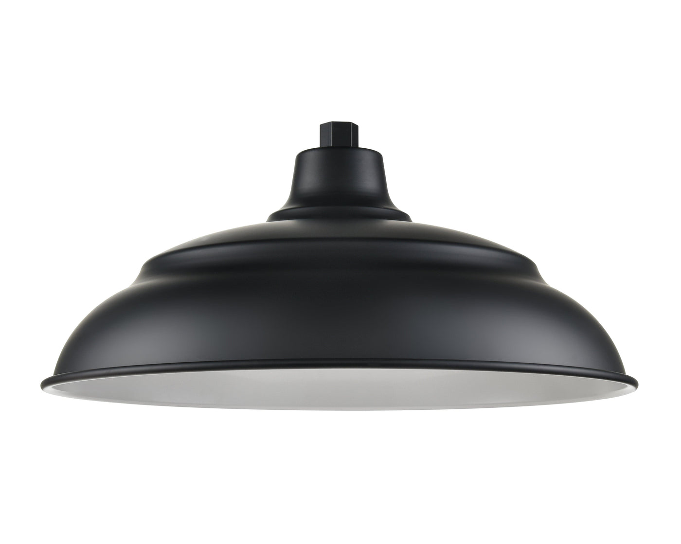 The Satin Black Aluminum Warehouse Light Fixture has a 20" Shade Diameter and 9-1/4" Shade Height.