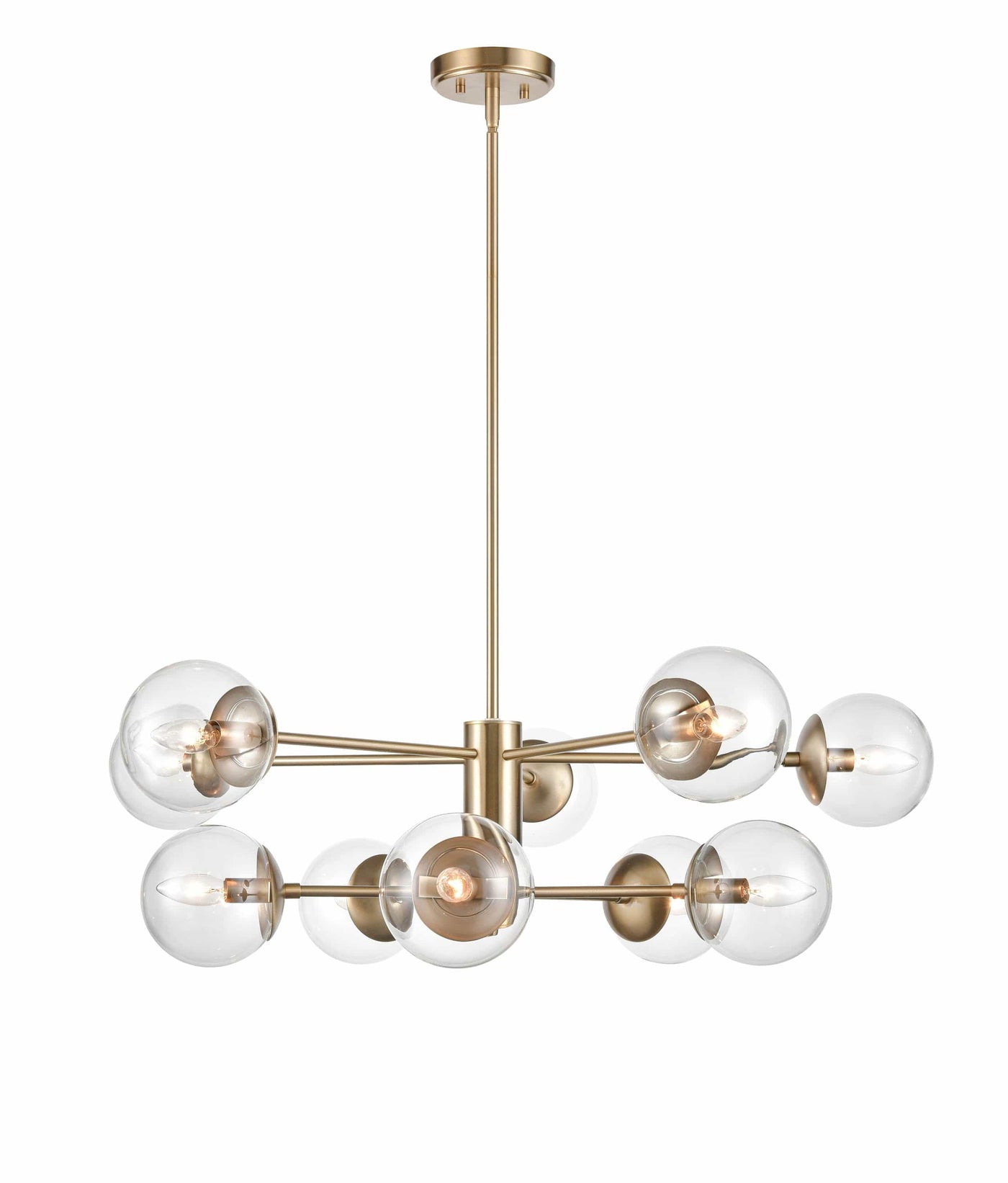 10 Lamps Avell Chandelier - Modern Gold - Clear Glass - 36in Diameter - E26 Medium Base