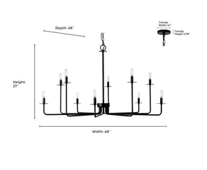 10 Lamps Marceline Chandelier - Modern Gold - 48in Diameter - E12 Candelabra Base