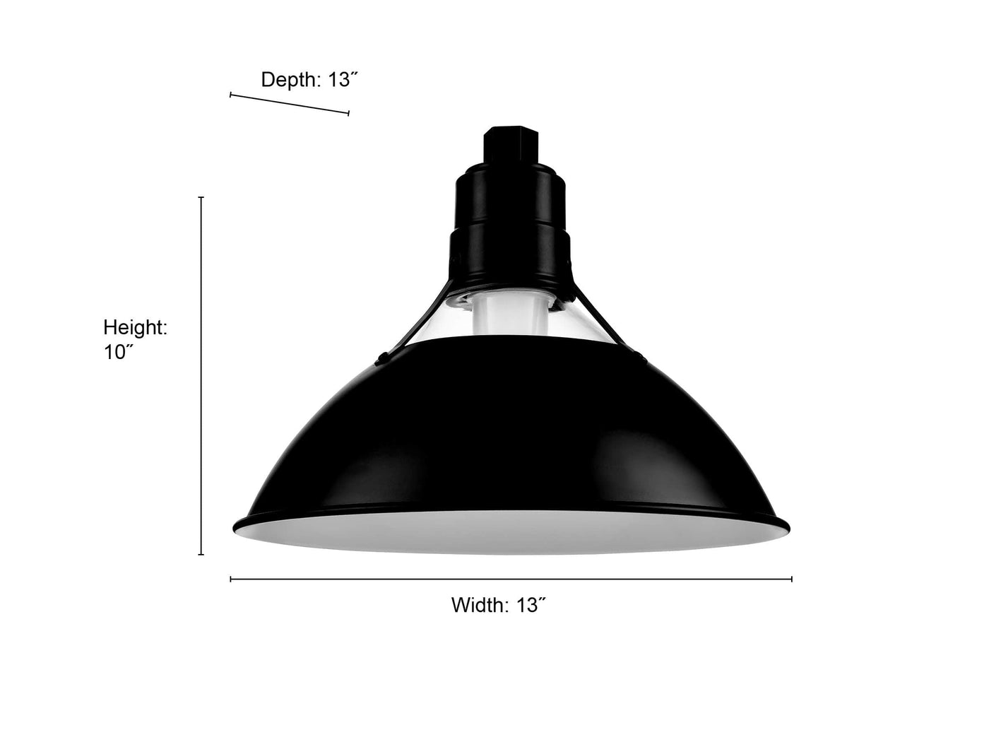 The Satin Black Glass Cone Light Fixture has a 13" Shade Diameter and 10" Shade Height.