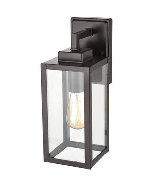 13in. Powder Coated Bronze Outdoor Wall Sconce - Clear Glass - E26 Medium Base