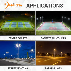 HTM Lighting Solutions' 150W LED Shoe Box Light can be used in various situations, including but not limited to outdoor basketball courts, school playgrounds, outdoor stadiums, parking lots, soccer fields, and street lamps. These powerful LED parking lot light fixtures create a drastically brighter, safer, and illuminated environment.