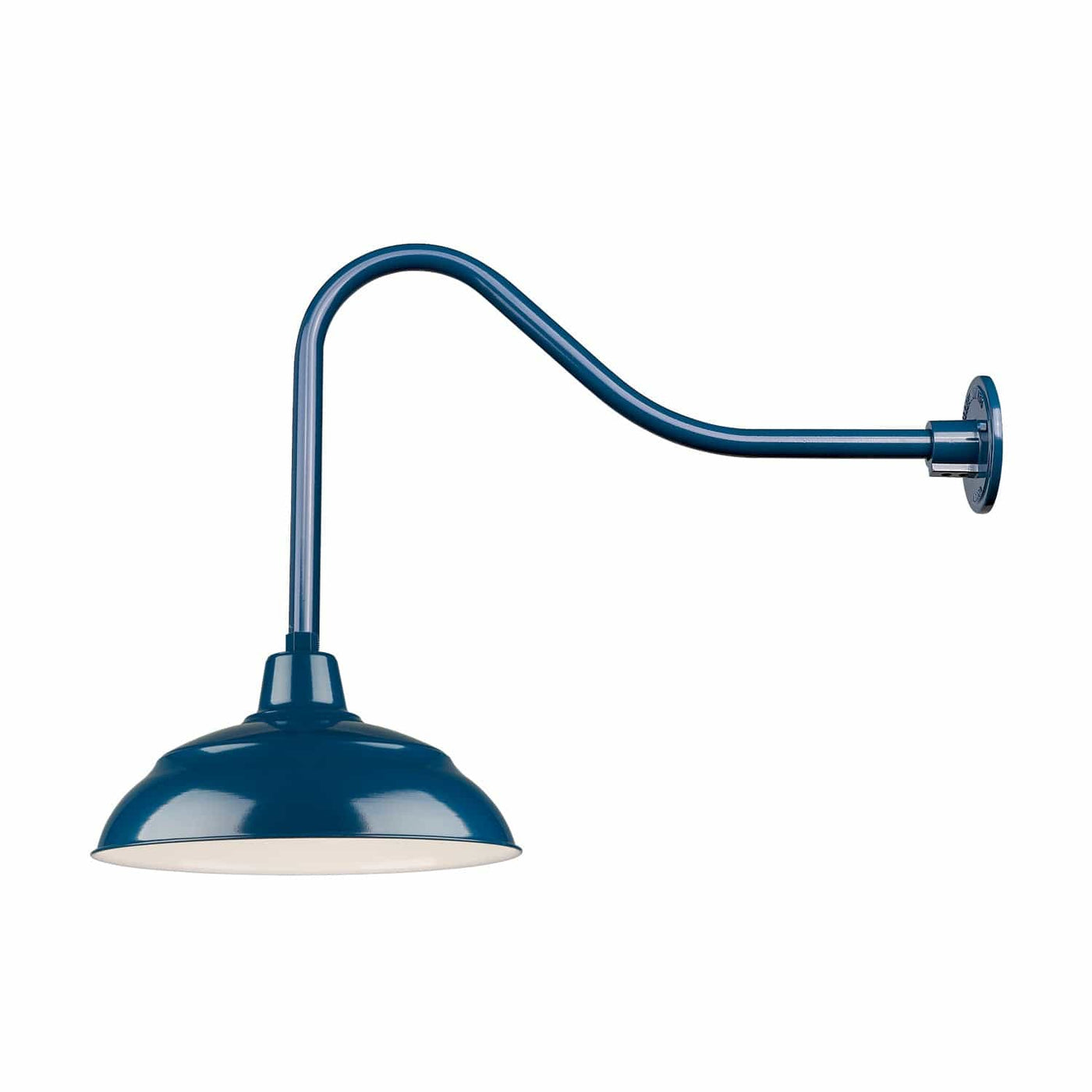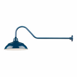 The Navy Blue Warehouse Light Fixture has a 17" Shade Diameter and 9-1/4" Shade Height.