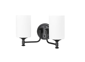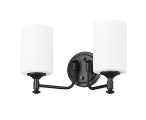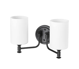 2 Lamps Ailey Vanity Light - Matte Black - Etched Opal White Glass - 14.625in. Wide