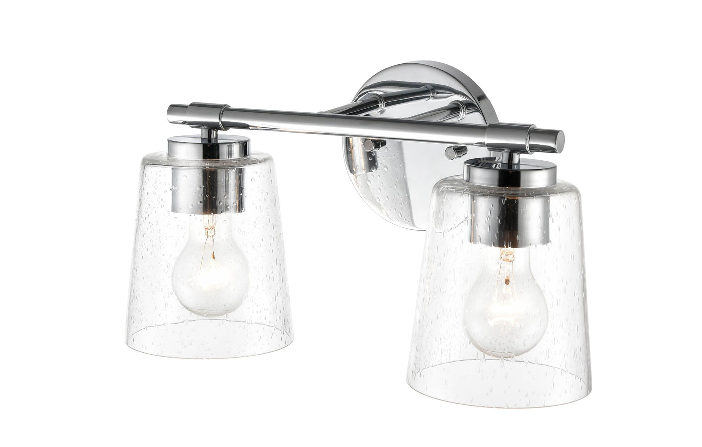 This Vanity Light features a Chrome finish and Clear Seeded glass.