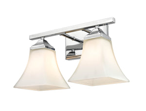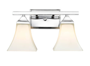 2 Lamps Bathroom Vanity Light - Chrome - Etched White Glass - 14in. Wide