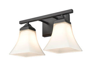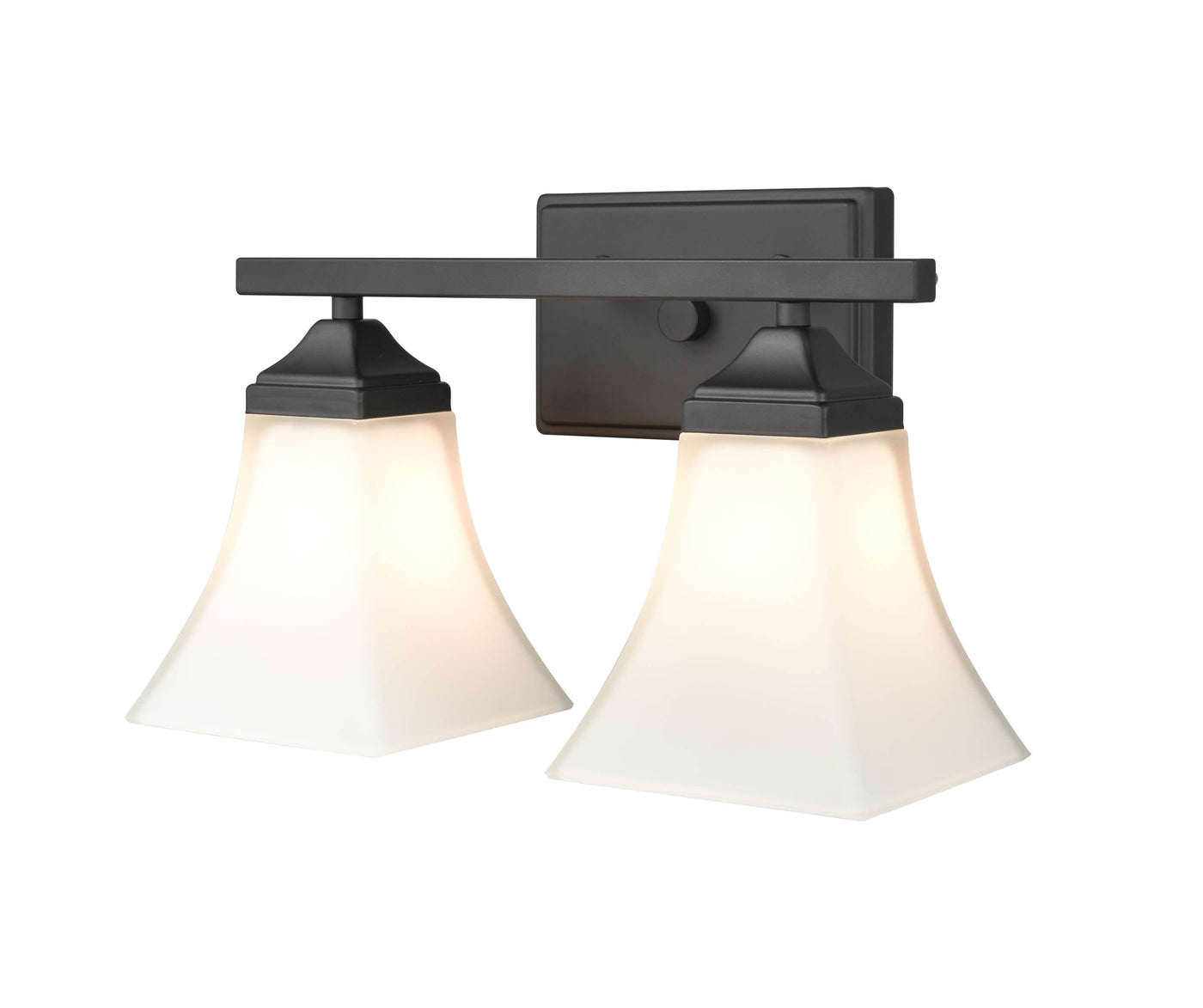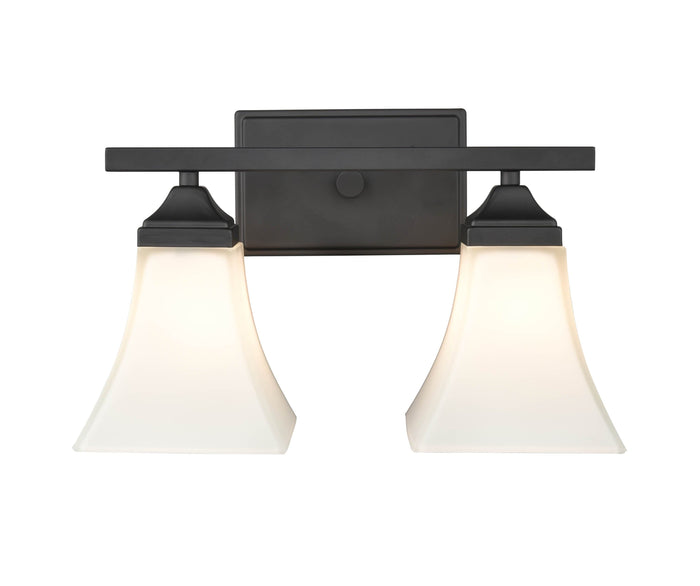 2 Lamps Bathroom Vanity Light - Matte Black - Etched White Glass - 14in. Wide
