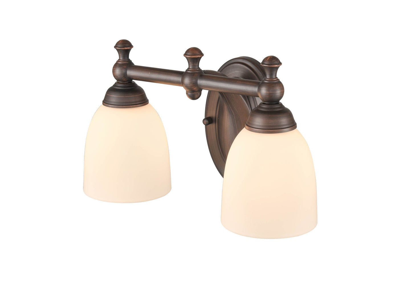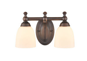 2 Lamps Bathroom Vanity Light - Rubbed Bronze - Etched White Glass - 13in. Wide