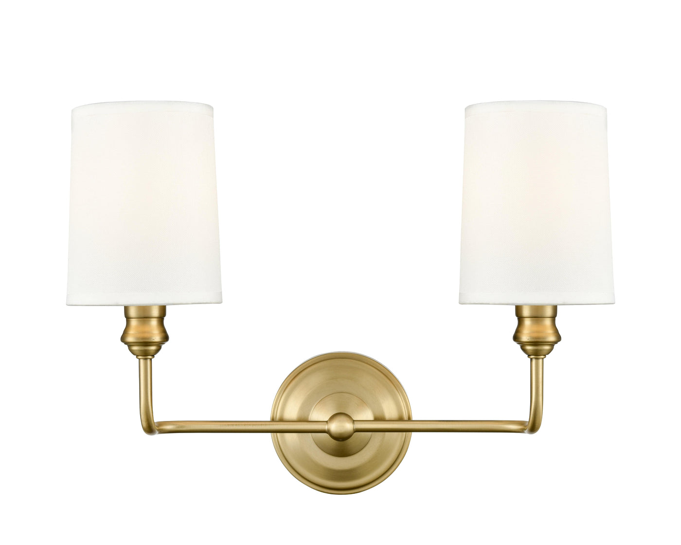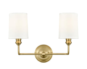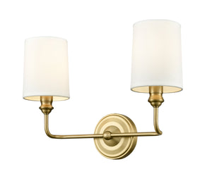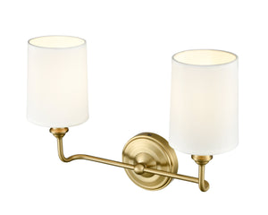 2 Lamps Leena Vanity Light - Vintage Brass - White Fabric Shade - 15.25in. Wide