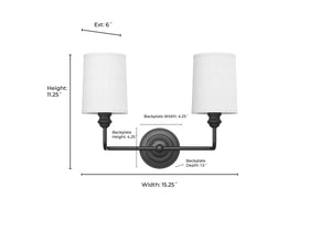 These classic fixtures are finished with white fabric shades for a warm glow and are perfect for hallway, bath, or bedroom..