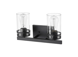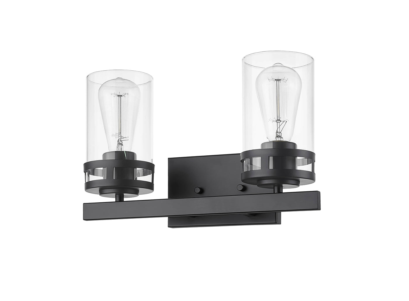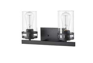 2 Lamps Lunden Vanity Light - Matte Black - Clear Glass - 14.5in. Wide