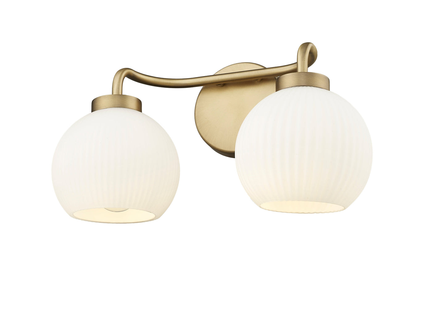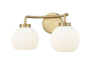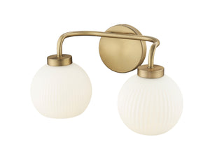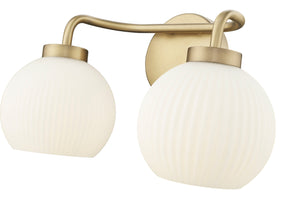 2 Lamps Oprah Vanity Light - Vintage Brass - Opal Ribbed Glass - 15in. Wide