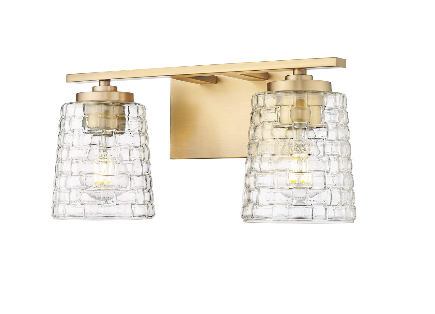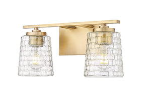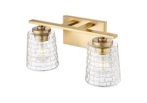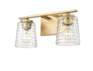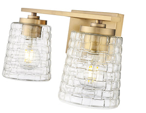 2 Lamps Saben Vanity Light - Vintage Brass - Clear Woven Lattice Glass - 15in. Wide