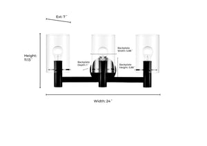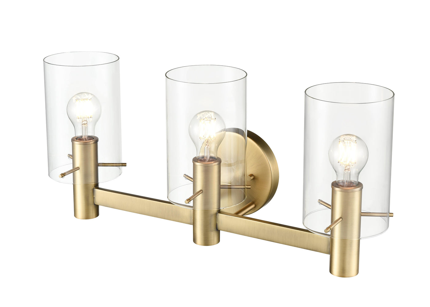 3 Lamps Apolla Vanity Light - Vintage Brass - Clear Glass - 24in. Wide