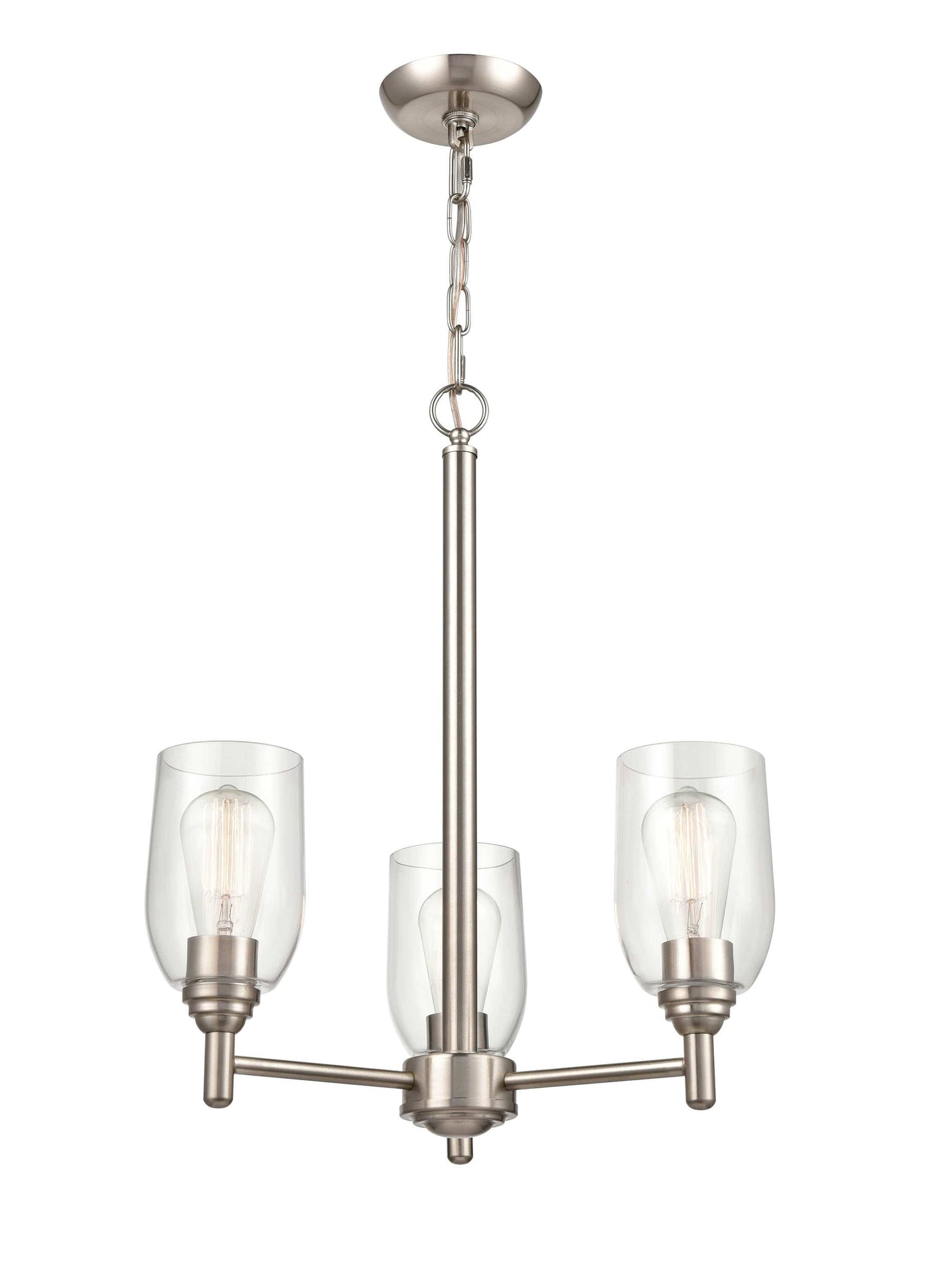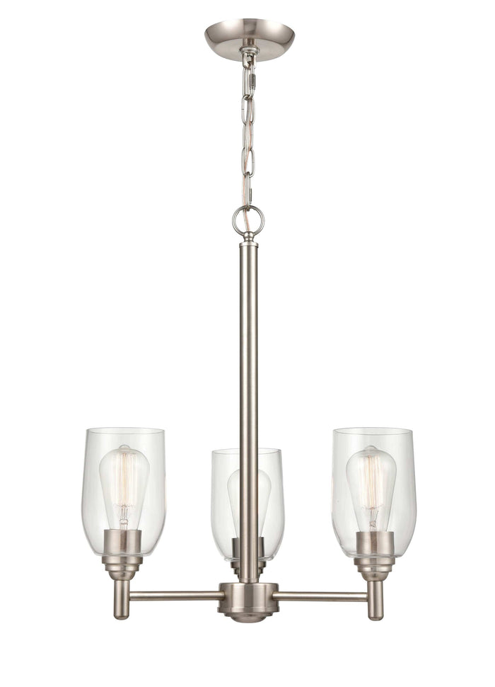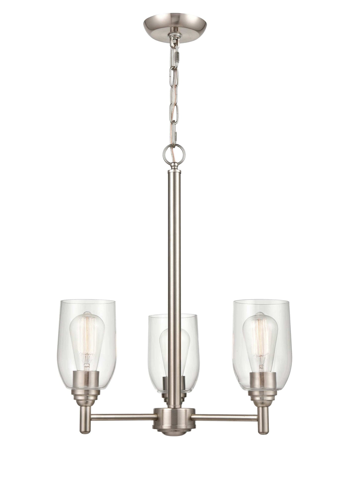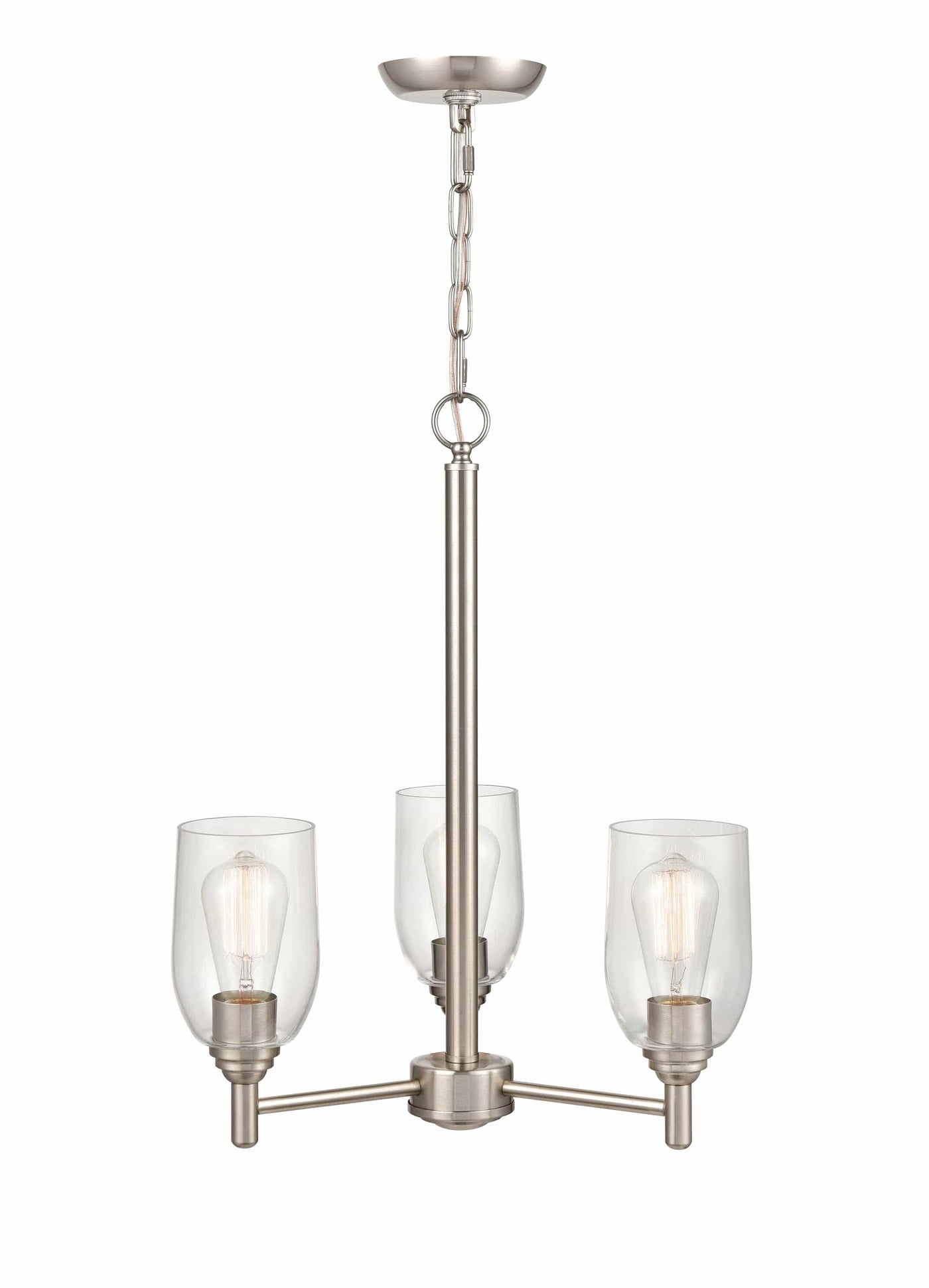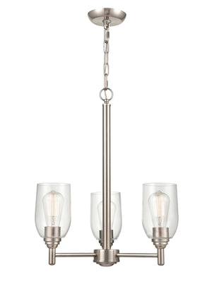 3 Lamps Arlett Chandelier - Brushed Nickel Finish - Clear Glass - 18.75in Diameter - E26 Medium Base