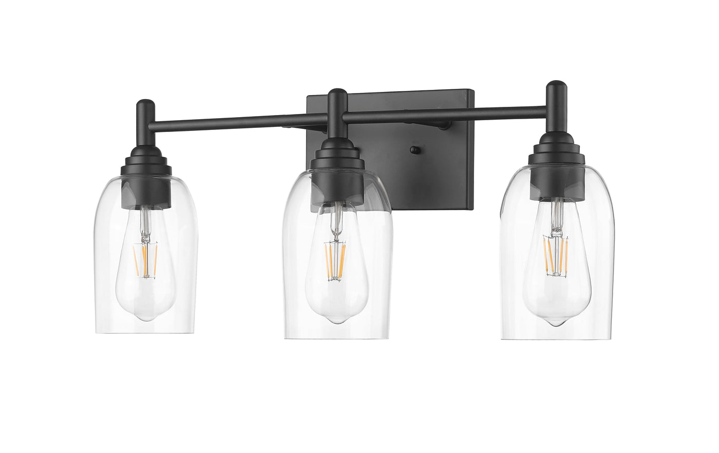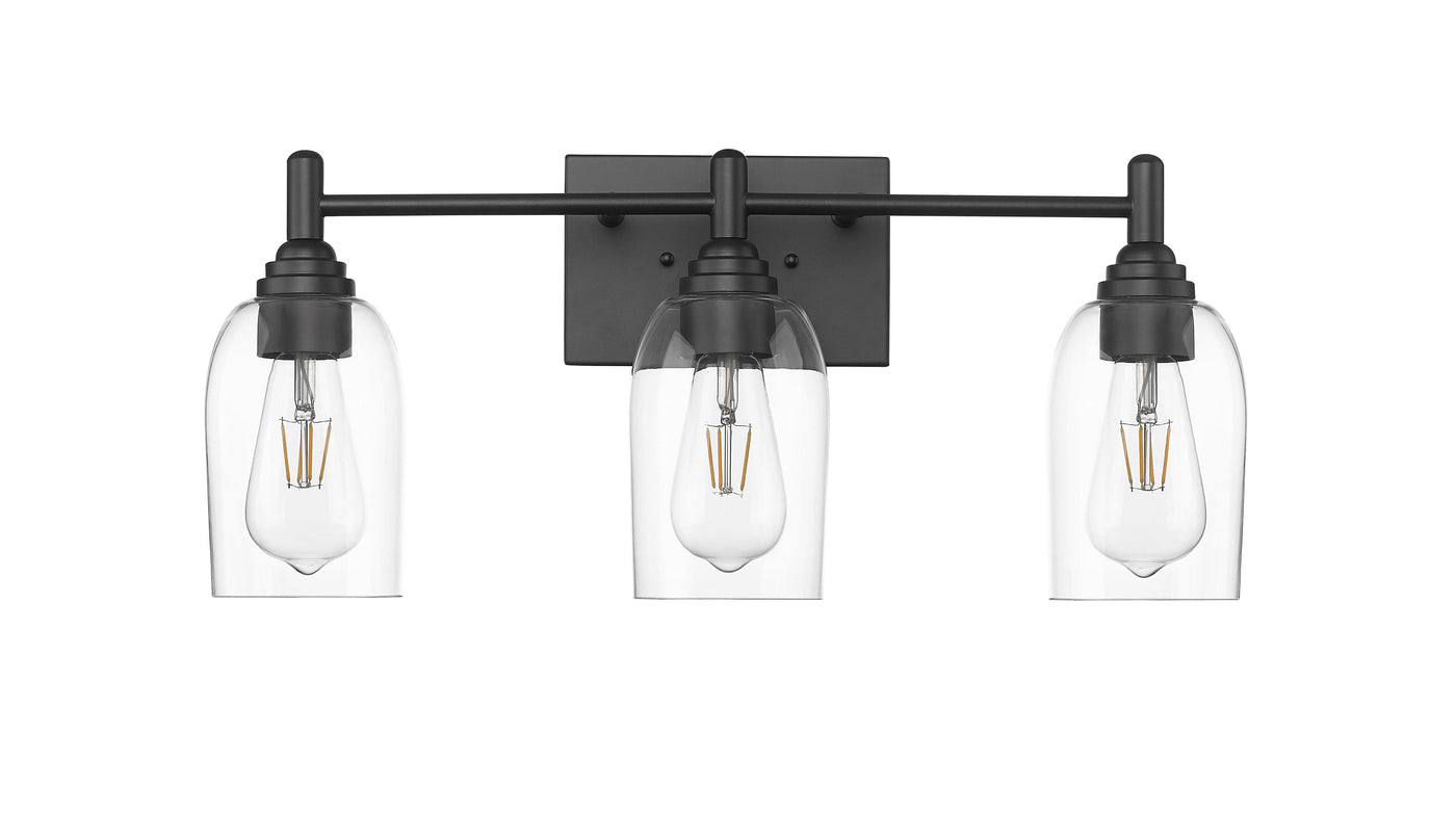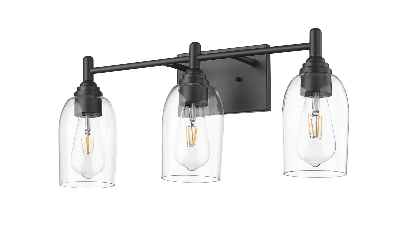 3 Lamps Arlett Vanity Light - Matte Black - Clear Glass - 22in. Wide