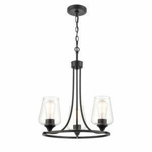 3 Lamps Ashford Chandelier - Matte Black - Clear Glass - 18in Diameter - E26 Medium Base