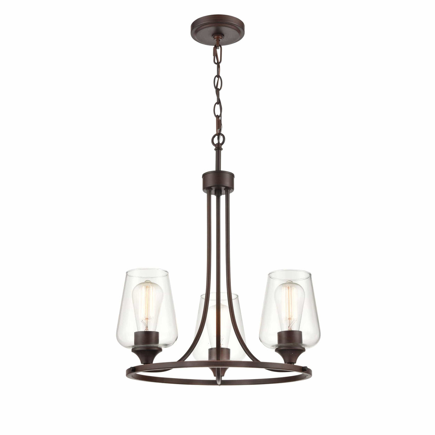 3 Lamps Ashford Chandelier - Rubbed Bronze - Clear Glass - 18in Diameter - E26 Medium Base