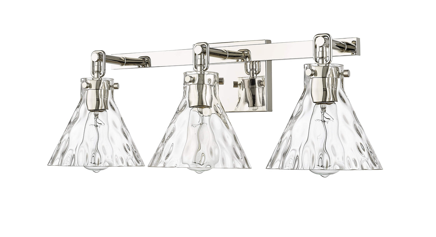 3 Lamps Barlon Vanity Light - Polished Nickel - Clear Water Glass - 25.5in. Wide
