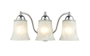 This Vanity Light features a Chrome finish and Faux Alabaster glass.