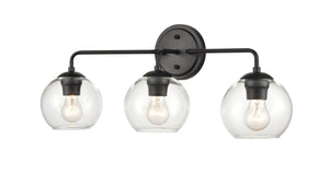 3 Lamps Bathroom Vanity Light - Matte Black - Clear Glass - 25.5in. Wide