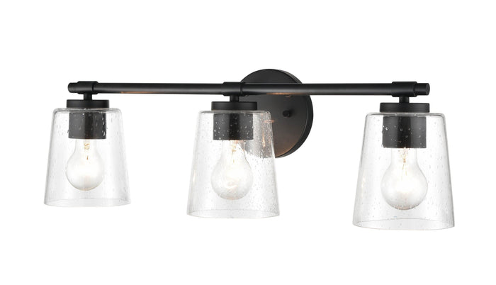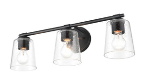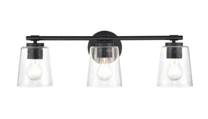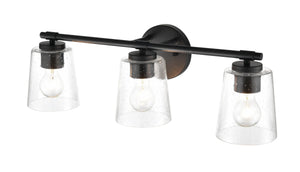 3 Lamps Bathroom Vanity Light - Matte Black - Clear Seeded Glass - 24.5in. Wide