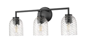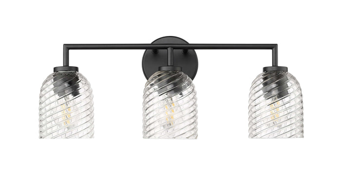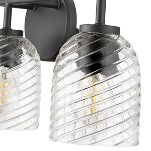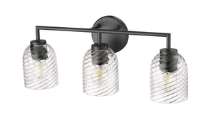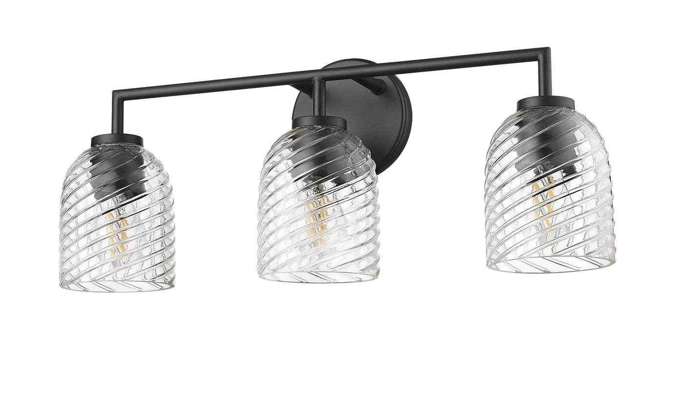 3 Lamps Catania Vanity Light - Matte Black - Clear Swirl Glass - 22.8in. Wide