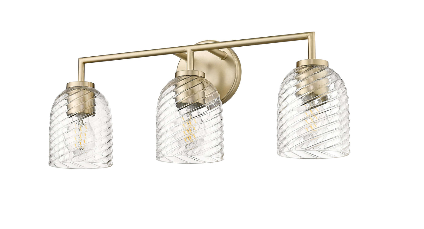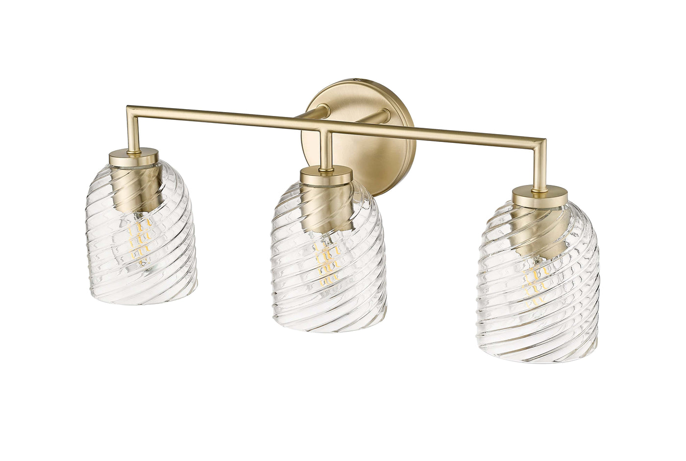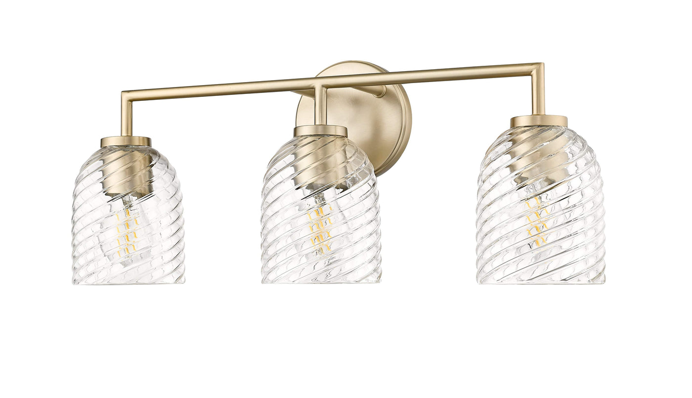 3 Lamps Catania Vanity Light - Modern Gold - Clear Swirl Glass - 22.8in. Wide