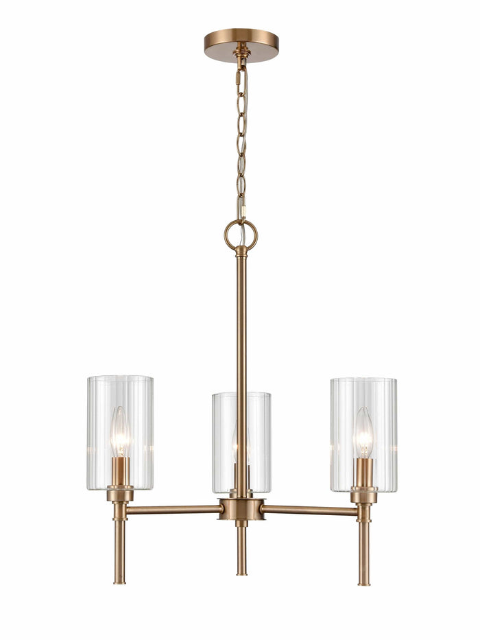 3 Lamps Chastine Chandelier - Modern Gold Finish - Clear Beveled Glass - 22in Diameter - E12 Candelabra Base