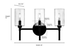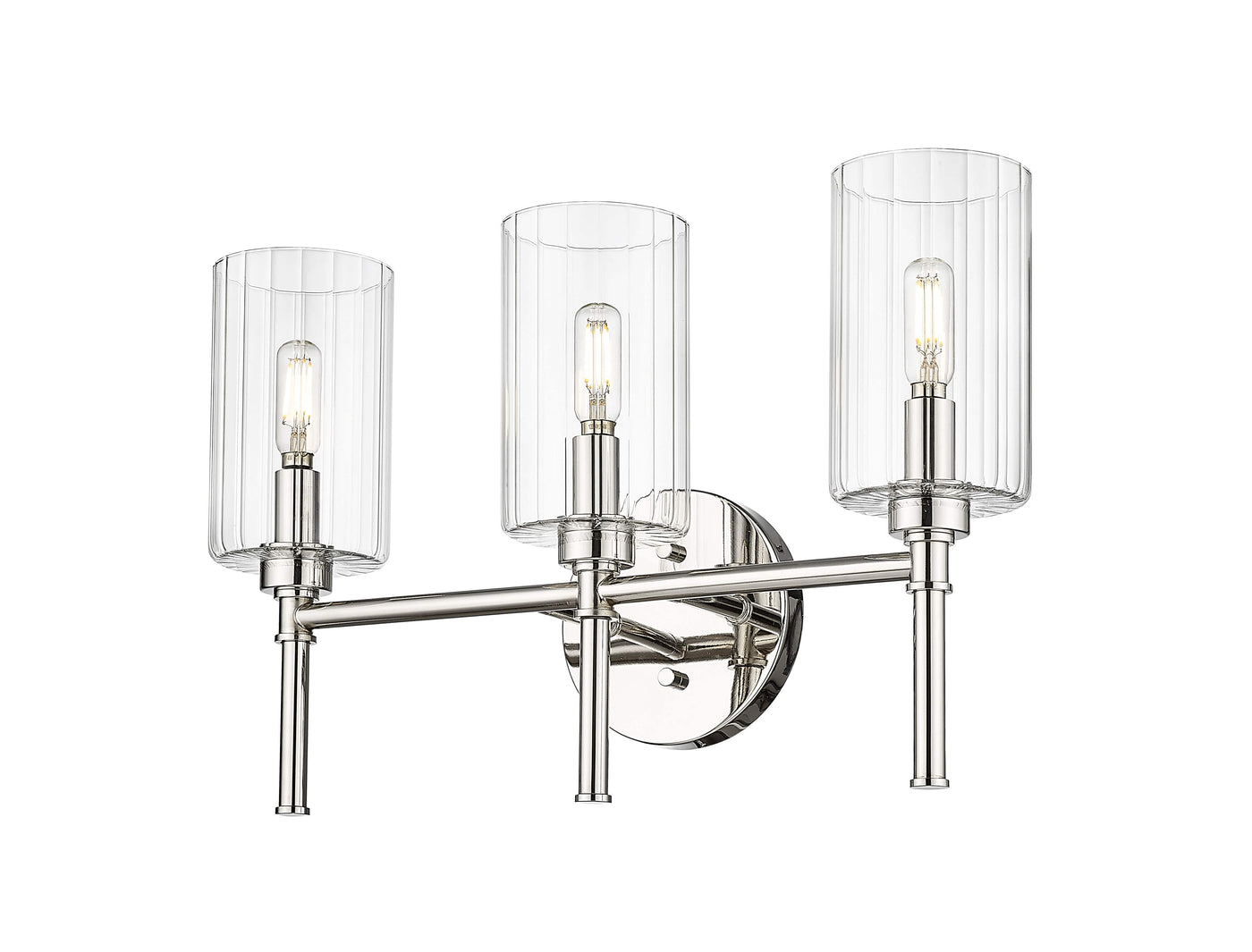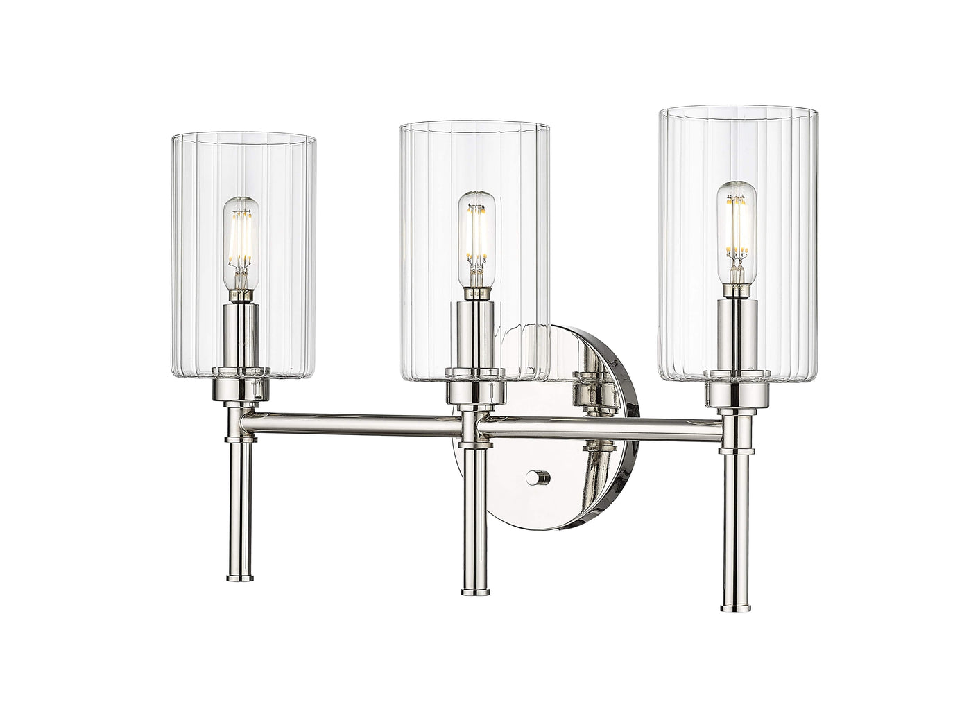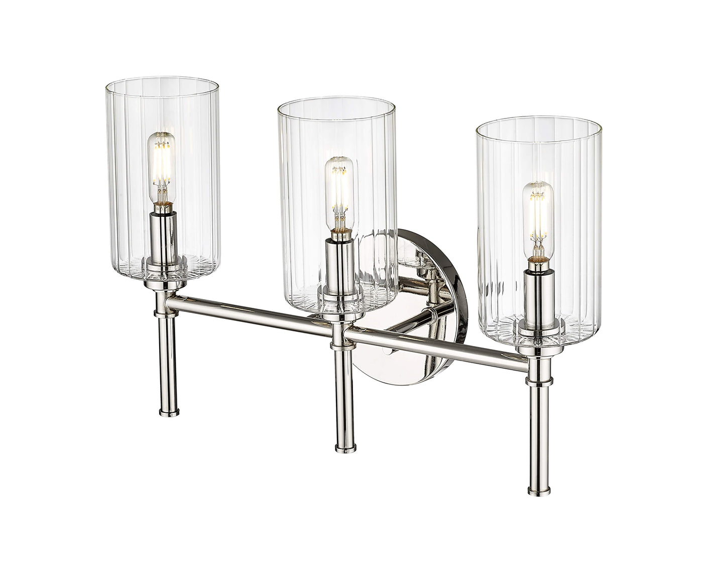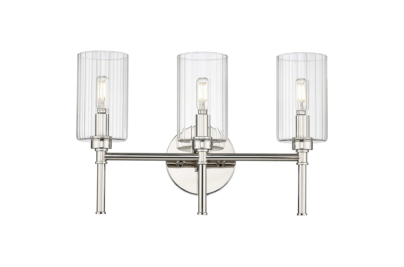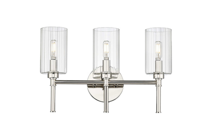 3 Lamps Chastine Vanity Light - Polished Nickel - Clear Beveled Glass - 19in. Wide