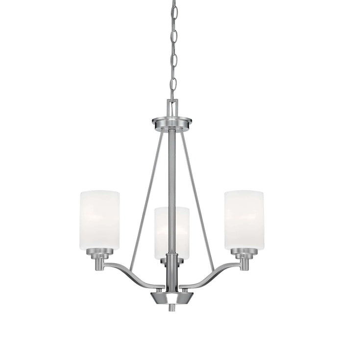 3 Lamps Durham Chandelier - Satin Nickel - Etched White Glass - 20.5in Diameter - E26 Medium Base