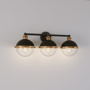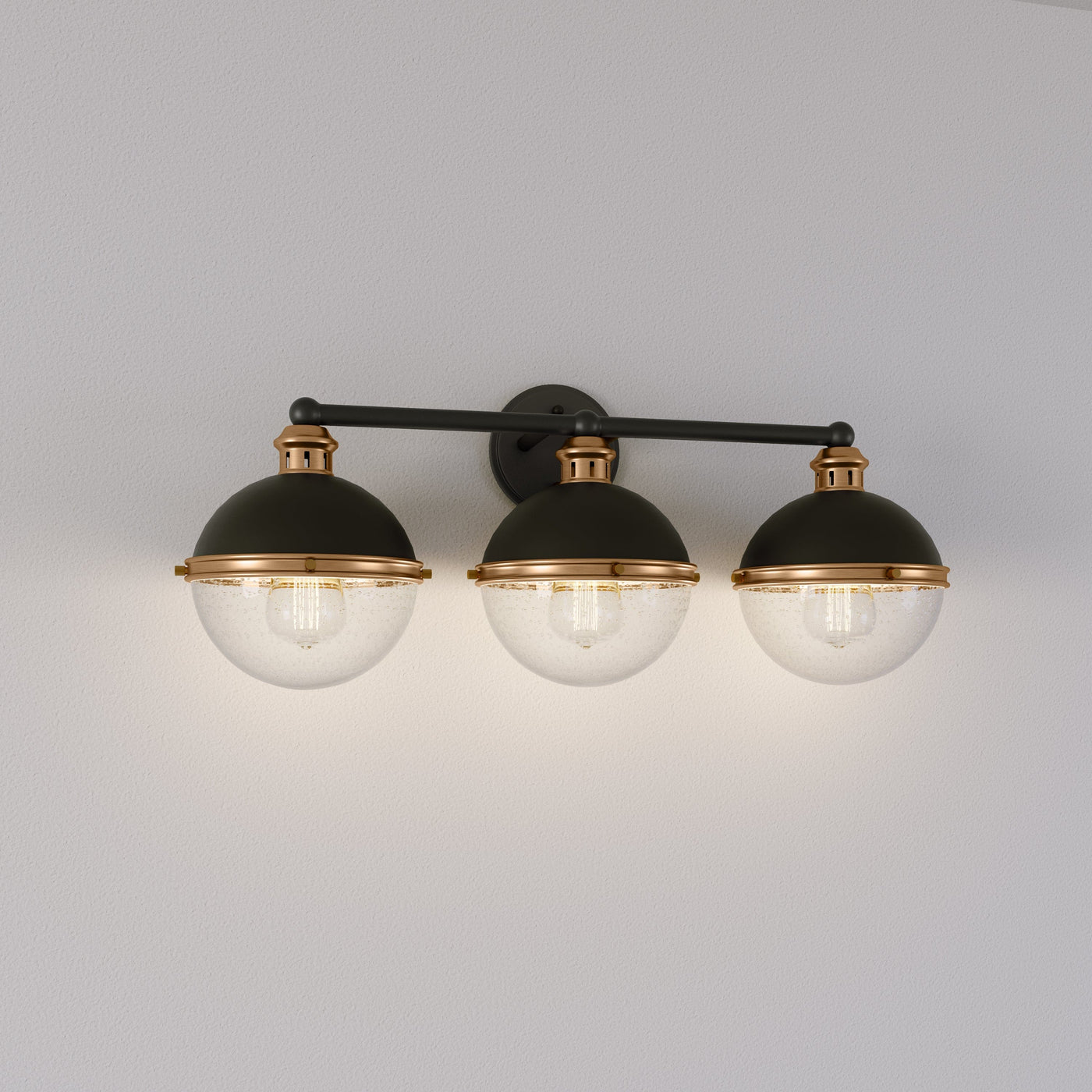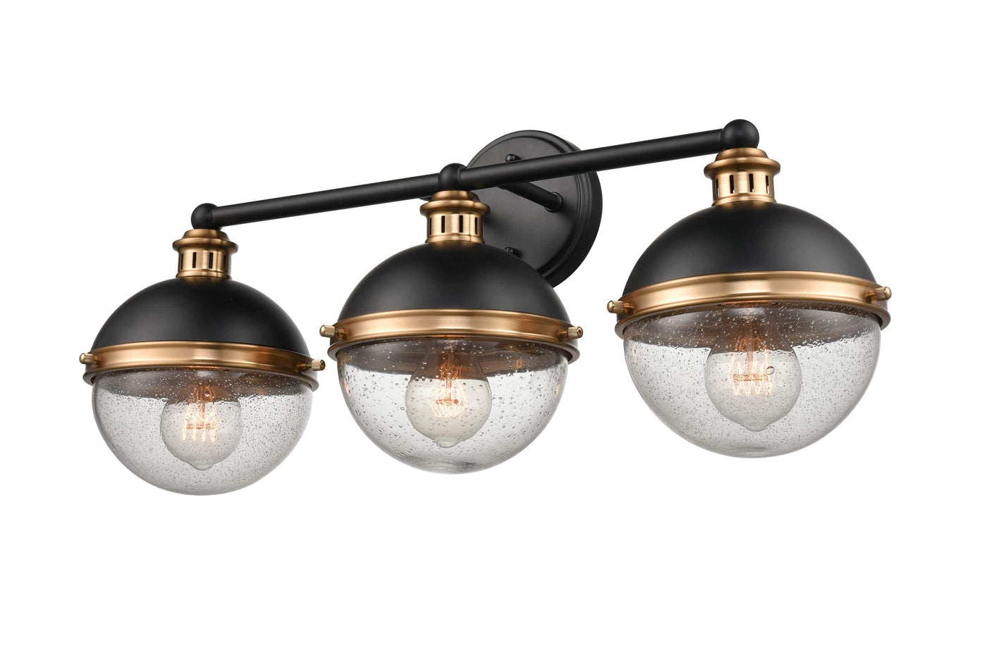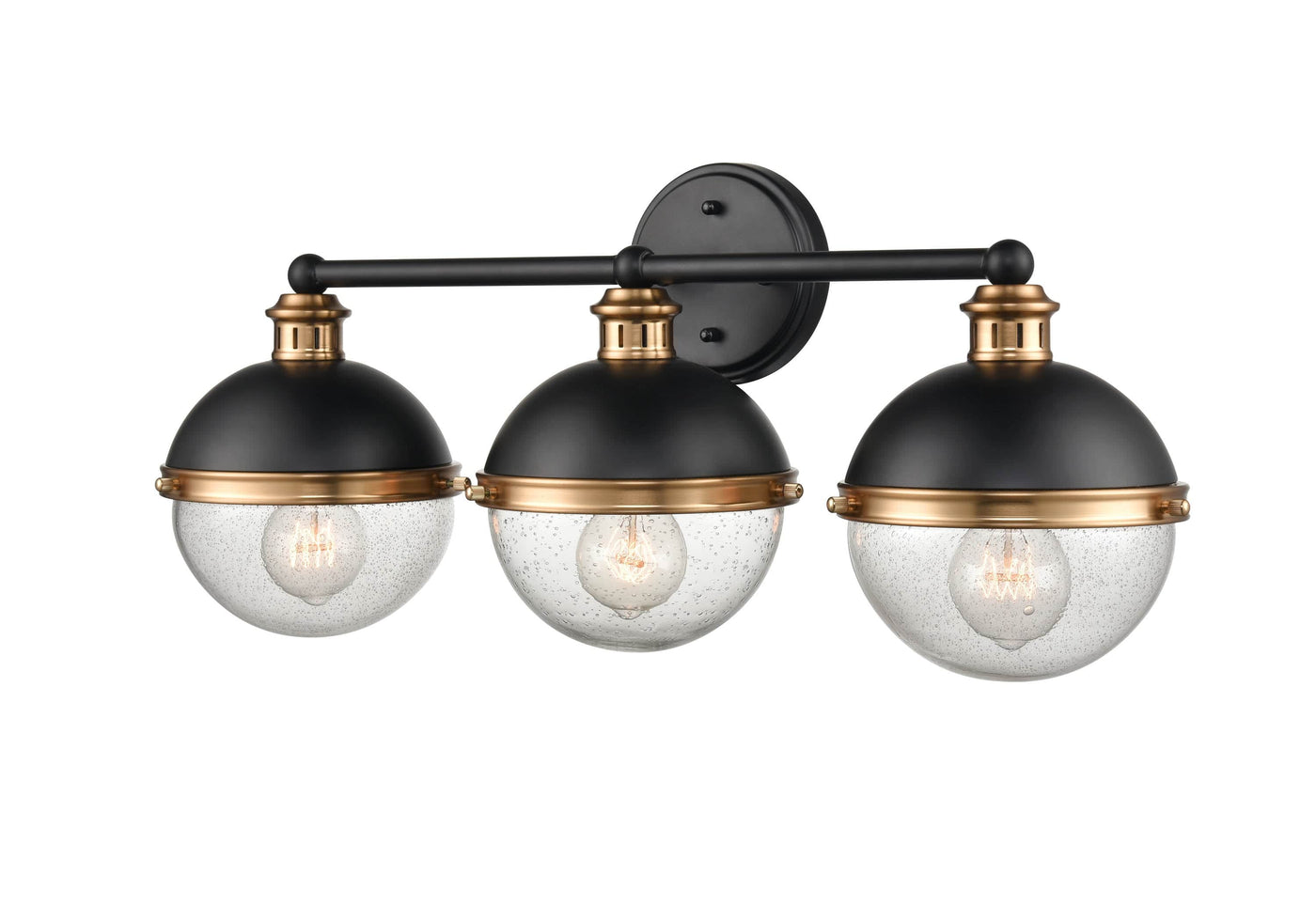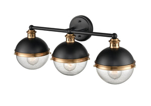 3 Lamps Ellmira Vanity Light - Matte Black / Aged Brass - Clear Seeded Glass - 23.75in. Wide